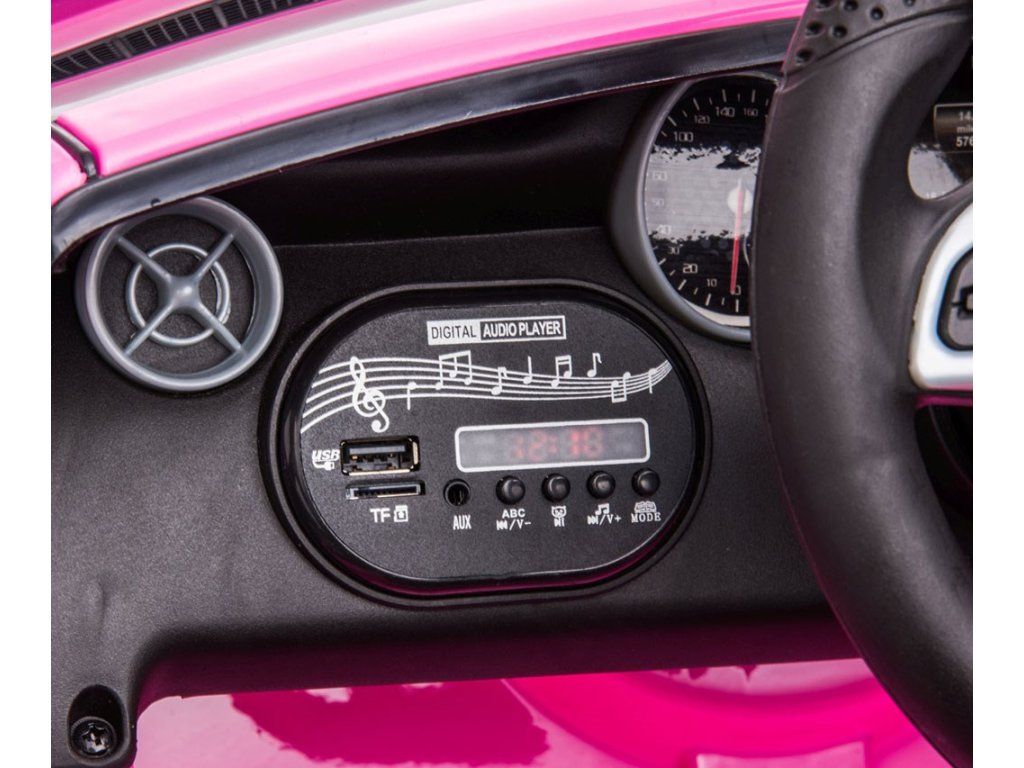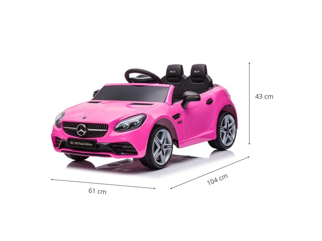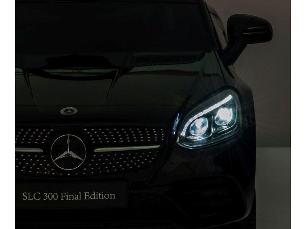 Vozidlo je licencováno společností Mercedes a zaručuje velkou pozornost věnovanou detailům a kvalitě použitých materiálů. Vůz je věrnou kopií modelu SLC-300.Auto se startuje tlačítkem START s realistickým zvukem motoru. Přístrojová deska je vybavena imitací hodin, panelem pro ovládání médií (ovládání hlasitosti, jízdy vpřed a vzad) spolu se vstupem USB, SD karty a AUX. Tlačítko "Mode" umožňuje poslech 5 předinstalovaných melodií a 5 pohádek. Chcete-li skladbu ztlumit nebo zesílit, podržte tlačítko pro posun "V+" nebo "V-" stisknuté po dobu přibližně 3 sekund. Na pravé straně volantu se nachází tlačítko úrovně rychlosti: "Nízká rychlost" a "Vysoká rychlost", stejně jako páka řazení (vpřed, neutrál a vzad).Mercedes lze ovládat dálkovým ovladačem nebo dítětem pomocí volantu a plynového pedálu. Když sundáte nohu z plynového pedálu, auto se samo zastaví. Dálkové ovládání má funkci: uzamčení vozidla- P, nastavení 1 ze 3 stupňů rychlosti- S, otáčení a jízdy vpřed a vzad. Chcete-li vůz spárovat s dálkovým ovladačem, podržte tlačítko "M" po dobu 2-4 sekund.Prostřednictvím jízdy si dítě rozvíjí manuální dovednosti, orientaci při pohybu a motoriku.CHARAKTERISTIKA:2 motory - každý o výkonu 30 WNapájení: 2 dobíjecí baterie 6V4,5Ah (nabíjení po dobu cca 8 h)Doba jízdy cca 1-2 h v závislosti na typu podkladu3 jízdy vpřed a 1 jízda vzad - přístupné z dálkového ovládání2 typy rychlosti: 2 možnosti rychlosti: SLOW a HIGHDálkové ovládání 2,4 G pro rodiče spárované s autem - možnost změny rychlosti a směru jízdyZásuvka AUX, USB a SDMultimediální ovládací panelPřední světlaOdpružení s pružinovými vzpěrami vzaduNastavitelná rychlost jízdy 2 - 4,3 km/hPlynový pedálBezpečnostní pásPočet sedadel: 1Multimediální volant - klakson a 5 melodiíOtevírání dveříBoční zrcátkaFunkce pomalého rozjezduFunkce automatického brzdění - zastaví vozidlo, když sundáte nohu z plynového pedáluPřípustná hmotnost uživatele: 30 kgVozidlo vhodné pro děti od 3 letStejnosměrná nabíječka 12V500AhZáruka 1 rokNabíječkaTECHNICKÉ ÚDAJE:Délka: 104 cmVýška: 43 cmŠířka: 61 cmPrůměr volantu: 19 cmPrůměr kol: 21 cmŠířka sedla: 32,5 cmVýška opěradla: 24 cmVzdálenost mezi sedadlem a plynovým pedálem: 23 cmVzdálenost od opěradla k volantu: 29 cmRozměry dálkového ovladače: 13 x 8 x 4,5 cmVýška k podvozku: 7,5 cmČistá hmotnost: 11,6 cmROZMĚRY BALENÍ:Délka: 109,5 cmŠířka: 56 cmVýška: 29 cmHrubá hmotnost: 15,7 kgDoplňkové parametry