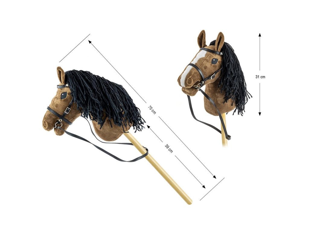 Hobby Horse Plus Milly Mally Tento roztomilý koník na tyči je skvělou volbou pro mladé milovníky jezdectví a her na čerstvém vzduchu se svými vrstevníky! Měkká plyšová hlava s realistickým vzhledem poskytuje autentický zážitek a pevná dřevěná tyč zajišťuje bezpečnou a stabilní zábavu.Pro malé jezdce, kteří mají rádi klasický vzhled, je koník na tyči ideální volbou. Plyšová hlava s dlouhou, měkkou hřívou působí realisticky a dítě ji může hladit nebo se k ní přitulit. Nadčasový design láká k nekonečné hře a rozvoji fantazie. Výhodou Hobby Koníka na tyči je, že dítě napodobováním pohybů koně přirozeně posiluje svou fyzickou kondici. Přednosti koníka na tyči: Vysoká kvalita zpracování: Vyroben s důrazem na bezpečnost a detaily z materiálů šetrných k pokožce. Podpora rozvoje: Podporuje fyzický vývoj, představivost a kreativitu dětí. Vhodný do interiéru i exteriéru: Skvělá zábava doma i venku. Charakteristika produktu: Plyšová hlava koně na dřevěné tyči Bezpečné provedení s měkkými materiály Dlouhé otěže Věk: od 36 měsíců Max. zatížení: 30 kg Materiál: polyester (hlava), dřevěná tyč Splňuje evropské bezpečnostní normy Rozměry:Výška: 70 cmDélka tyče: 39 cmDélka hlavy: 31 cmŠířka: 13 cmHmotnost: 0,5 kg Balení:Výška: 22 cm | Šířka: 13 cm | Délka: 70 cm | Hmotnost: 1 kgZáruka: 1 rokDoplňkové parametry