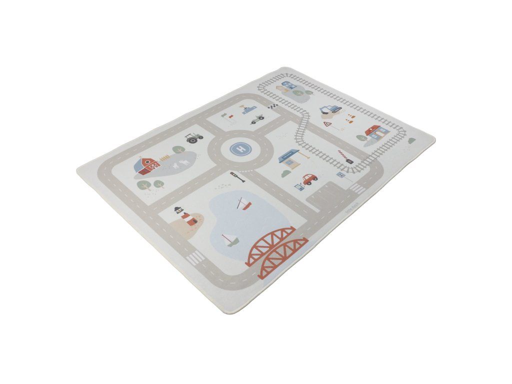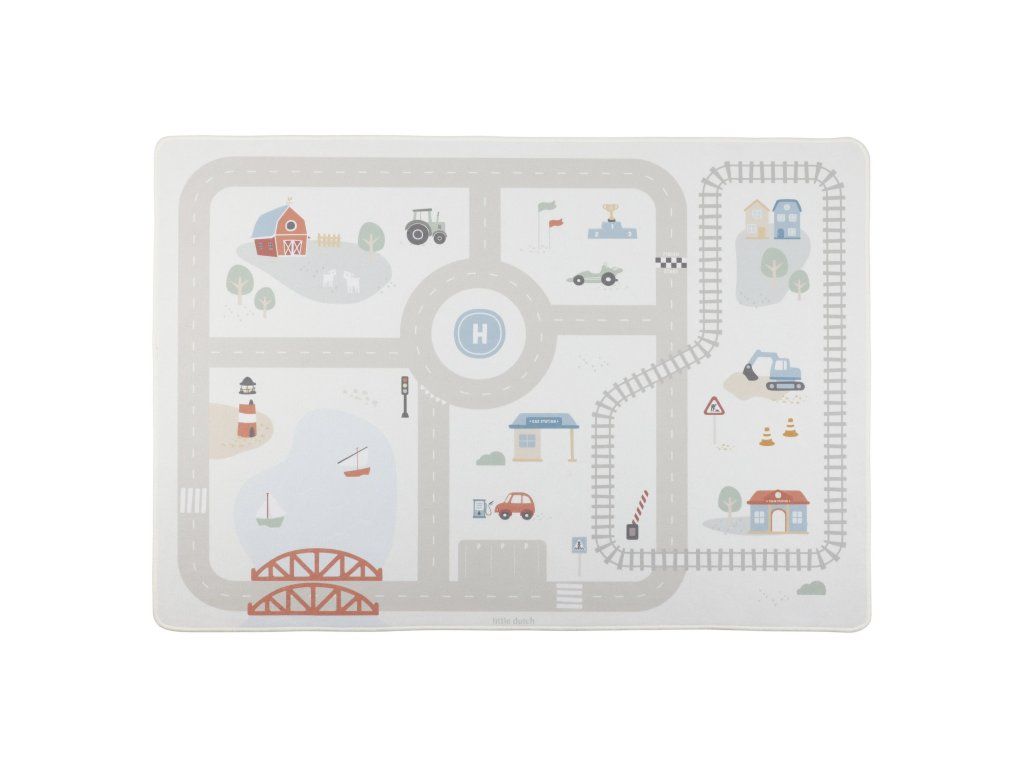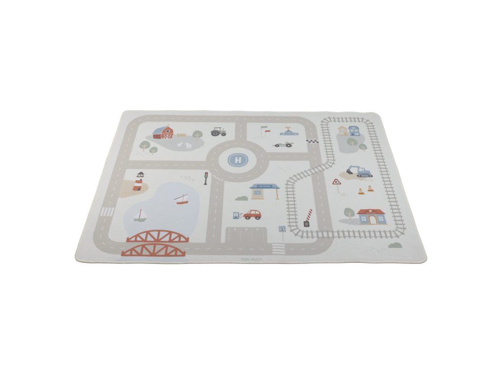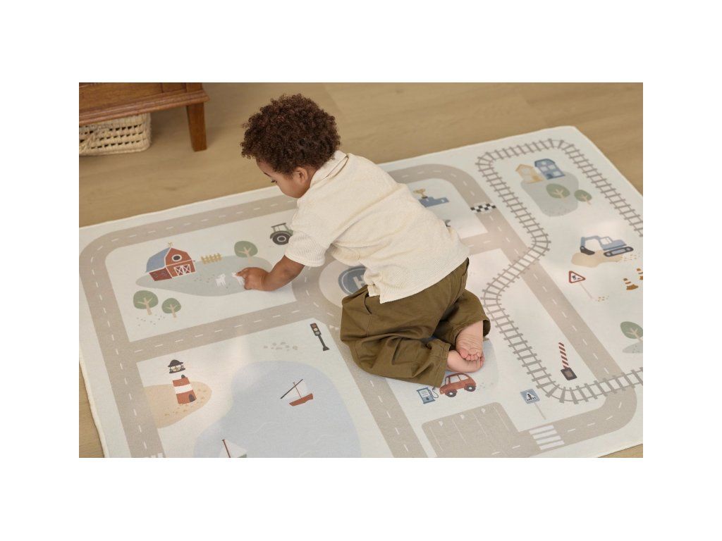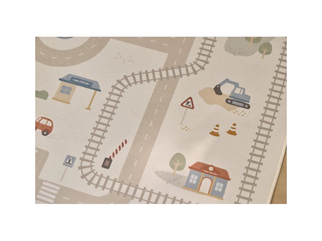 Dětský koberec Little Dutch promění podlahu v dětském pokoji v živý svět plný silnic, zatáček a křižovatek, kde se příběhy tvoří samy. Děti mohou parkovat auta do garáže, projíždět městem nebo se vydat na cestu vlakem – design koberce je přirozeně vede a podporuje fantazii i soustředěnou hru. Koberec bude skvělým doplňkem při hraní s autíčky, vláčky, stavebnicemi nebo dalšími hračkami. Koberec s měkkým povrchem v jemných pastelových barvách nabízí pohodlné a bezpečné místo pro hraní a bude i krásným doplňkem do dětského pokoje. Díky protiskluzové vrstvě dobře drží na podlaze a podporuje i motorický rozvoj dítěte. Rozměry: 140 × 100 cm Údržba: pouze otírejte vlhkým hadříkem, neperte Vhodné pro děti od 2 let.Doplňkové parametry
