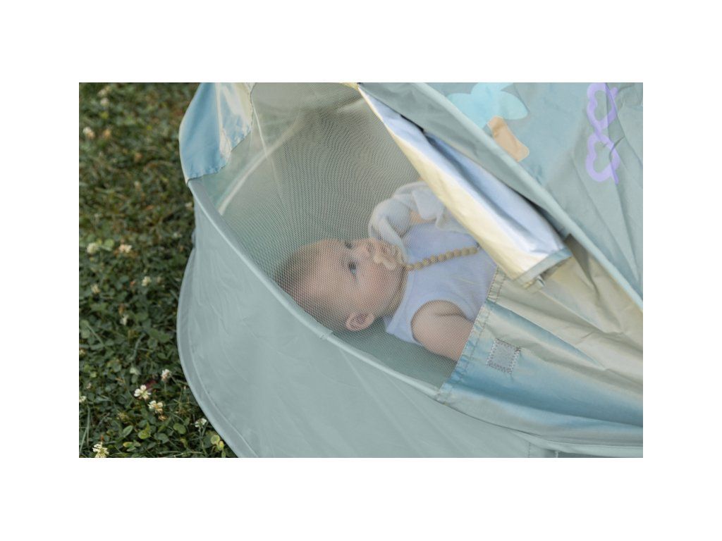 Přenosný univerzální stan s UV faktorem 50+ pro ochranu dítěte před sluncem na zahradě, na pláži či na výletech do přírody. Stan umožňuje snadnou ventilaci díky bočním otvorům se síťovinou a textilními chlopněmi, které je možné srolovat. Síťovina chrání dítě ve stanu před obtížným hmyzem. Tkanina s chladivým efektem pomáhá snižovat teplotu uvnitř stanu. Díky vysokým okrajům stan slouží i jako hrací ohrádka. Stan s vyskakovacím systémem velmi snadno složíte i rozložíte. Po složení do přenosné tašky o průměru 44 cm jej vezmete s sebou kamkoli potřebujete. Rozměry: průměr 100 cm, výška 60 cm Příslušenství: taška na přenášení, 4 kolíky pro uchycení stanu. Složení: 100% polyester (bez PFAS) Vhodné pro děti od narození do 24 měsíců.Doplňkové parametry