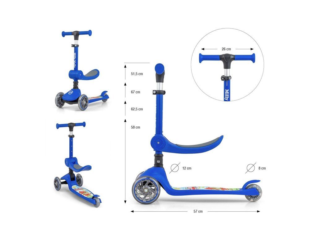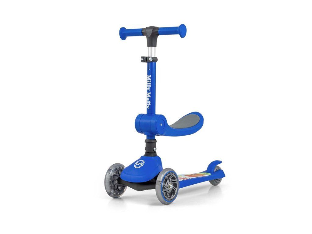 Tříkolová balanční koloběžka-scooter se sedátkem FUZZY Milly Mally blue