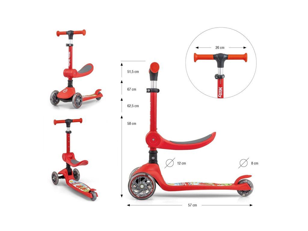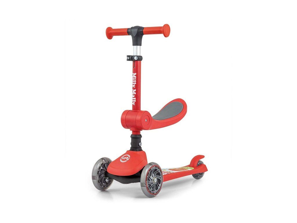 Tříkolová balanční koloběžka-scooter se sedátkem FUZZY Milly Mally red