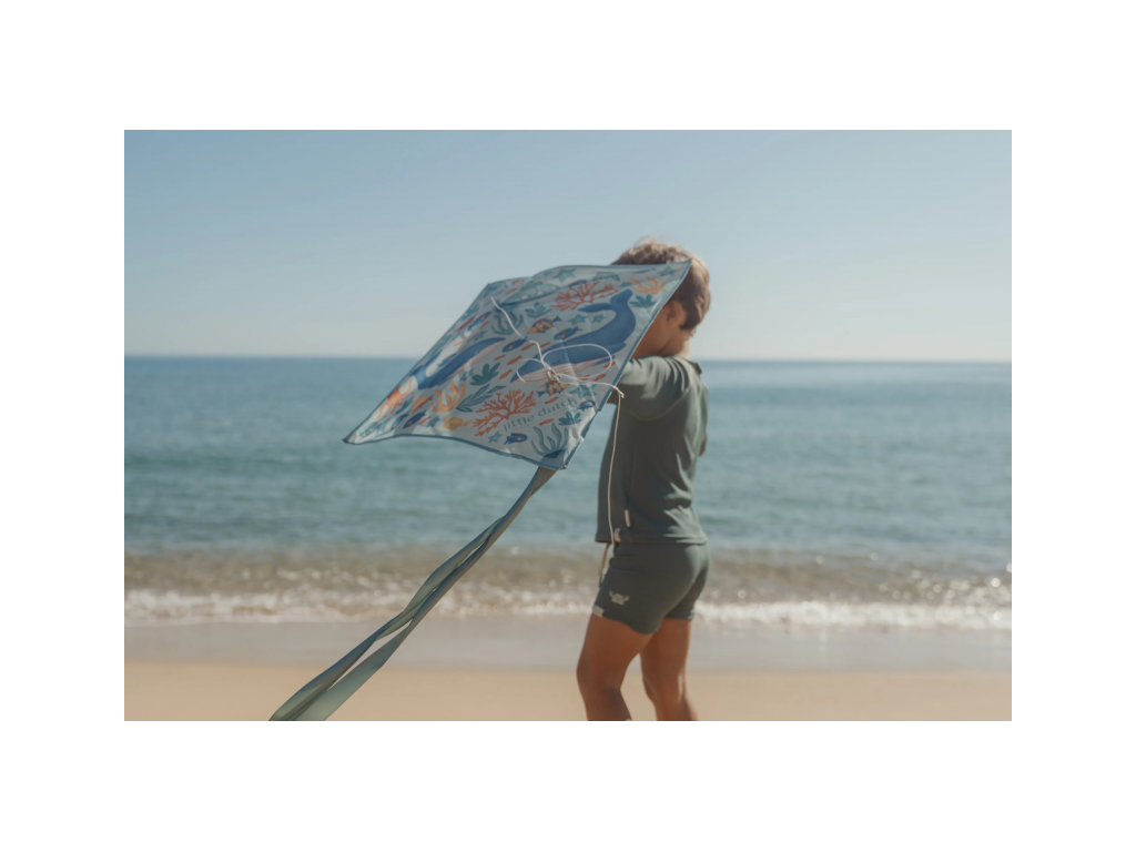 Klasický létající drak v kvalitním provedení s krásným potiskem motivů ze života pod mořskou hladinou poskytne vašim dětem spoustu zábavy při hraní venku. Drak je vyroben z pevné ripstopové tkaniny a sklolaminátových tyčí, kulatá plastová rukojeť usnadňuje držení šňůry. Drak je součástí designové kolekce Little Dutch Ocean World. Rozměry: 65 x 65 cm Vhodné pro děti od 5 let.Doplňkové parametry