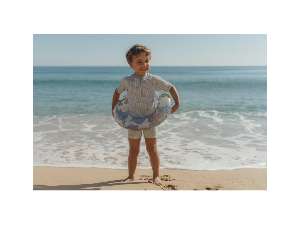 Nafukovací kruh na plavání s krásným potiskem motivů ze života pod mořskou hladinou. Kruh je součástí designové kolekce Little Dutch Ocean World. Průměr kruhu: 50 cm Vhodné pro děti od 3 let.Doplňkové parametry