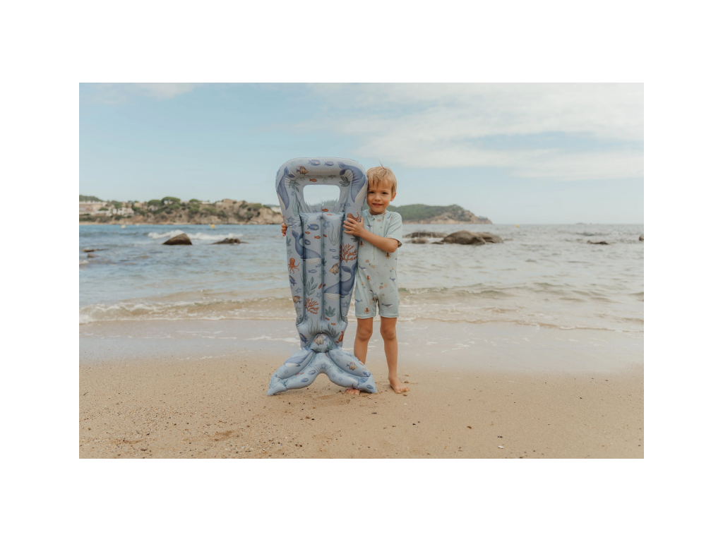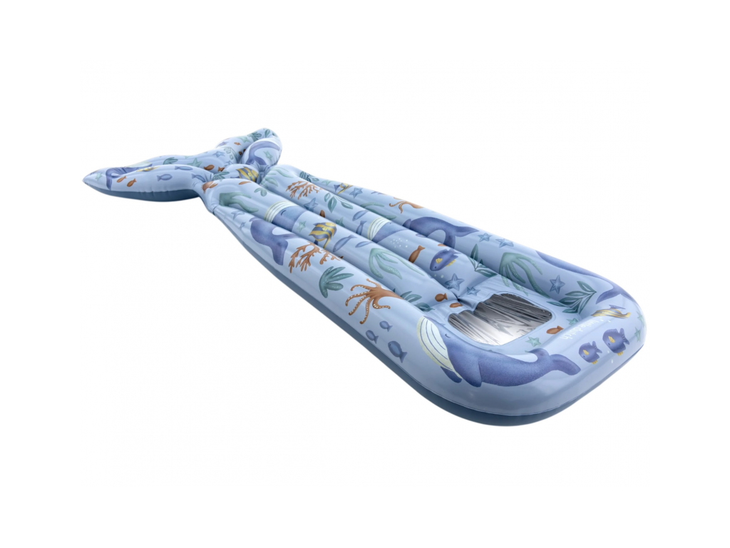 Nafukovací lehátko do vody s krásným potiskem motivů ze života v moři vaše děti využijí pro hraní v bazénu i na pláži u moře. Průhledné okénko umožňuje sledovat život pod hladinou pro větší zábavu. Lehátko snadno nafouknete a když jej zrovna nepoužíváte, snadno jej vypustíte a složíte do kompaktního tvaru. Lehátko je součástí designové kolekce Little Dutch Ocean World. Nosnost: 18 kg Vhodné pro děti od 3 let.Doplňkové parametry