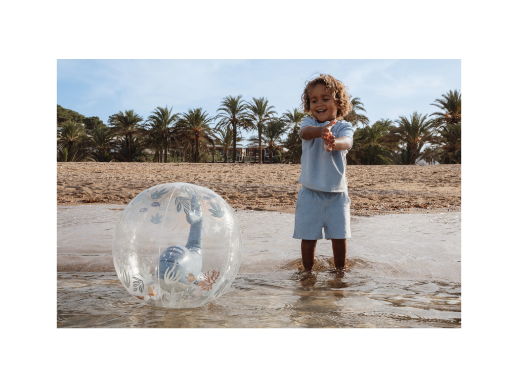 Nafukovací míč v originálním provedení s nafukovací velrybou uvnitř míče a s krásným potiskem motivů ze života pod mořskou hladinou využijí vaše děti pro hraní na zahradě i na pláži u moře. Míč je součástí designové kolekce Little Dutch Ocean World. Průměr míče: 35 cm Vhodné pro děti od 2 let.Doplňkové parametry