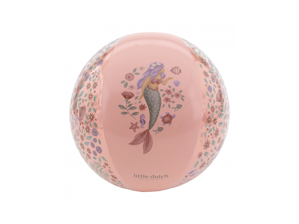 Nafukovací míč s krásným potiskem motivů mořské víly a květin využijí vaše děti pro hraní na zahradě i na pláži u moře. Míč je součástí designové kolekce Little Dutch Dreamy Mermaid. Průměr míče: 35 cm Vhodné pro děti od 2 let.Doplňkové parametry