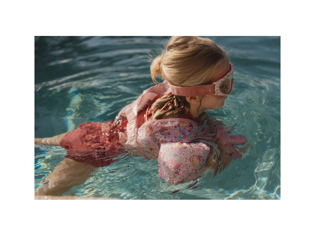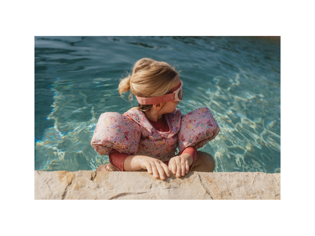 Kvalitní plavecké brýle umožní vašemu dítěti plavat a potápět se s jistotou. Brýle jsou vyrobeny z příjemného měkkého materiálu. Nabízí široké zorné pole, bezpečnostní skla a pružný nastavitelný pásek kolem hlavy. Brýle jsou součástí designové kolekce Little Dutch Dreamy Mermaid. Součástí je praktický úložný sáček. Vhodné pro děti od 3 do 8 let.Doplňkové parametry