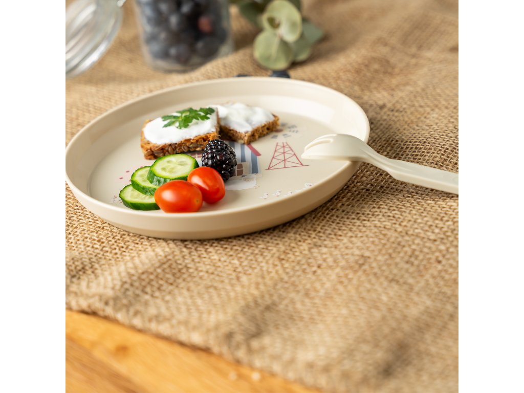 Dětsky přívětivé tvary a funkce Lehký talíř s vyvýšeným okrajem, mělká lžička a vidlička se širokou rukojetí jsou ideální pro malé dětské ruce. Maximálně bezpečné pro děti Zaoblené hrany, měkké hroty vidličky a jemné tvary chrání dítě před poraněním při samostatném jídle. Udržitelné a certifikované Vyrobeno ze 100 % bioplastu na bázi obnovitelných surovin (ISCC PLUS, metoda hmotnostní bilance), šetrné k přírodním zdrojům a zaměřené na budoucnost. Praktické pro každodenní použití Odolné proti rozbití, bez BPA a ftalátů, vhodné do myčky i mikrovlnné trouby, pro bezstarostné používání v rodinách s malými dětmi. Roztomilý design Hrací dětské motivy ve dvou kouzelných variantách: Little Explorer (zelená) a Little Farm (béžová), každé jídlo se tak promění v malé dobrodružství. Dětská jídelní sada reer byla vyvinuta speciálně s ohledem na potřeby malých dětí. Je lehká, ergonomická a bezpečná. S pečlivě navrženým talířem, miskou, hrníčkem, vidličkou a lžičkou je ideální pro nácvik samostatného stravování a zároveň přináší radost z jídla. Zvláštní pozornost byla věnována bezpečnosti. Všechny části mají zaoblené hrany, hroty vidličky jsou jemné a lžička má mělký tvar, což umožňuje první pokusy o jídlo bez rizika poranění. Sada je navíc odolná proti rozbití a neobsahuje BPA ani ftaláty. Výrazným prvkem je udržitelnost materiálu. Sada je vyrobena ze 100 % biobazovaného polypropylenu, který je prostřednictvím certifikovaného ISCC PLUS hmotnostního bilancování odvozen z obnovitelných surovin. Jedná se o vědomý příspěvek k ochraně životního prostředí a k budoucnosti našich dětí. Díky praktickému provedení je sada vhodná do každodenního používání. Lze ji mýt v myčce a ohřívat v mikrovlnné troubě do 600 W. Dětský design ve variantách Little Explorer (zelená) nebo Little Farm (béžová) promění každé jídlo v malé dobrodružství. Detaily produktu Barva: zelená Obsah: 1 talíř, 1 miska, 1 hrníček, 1 lžička, 1 vidlička Materiál: 100 % přírodní biobazovaný cirkulární polypropylen, certifikace ISCC Lehká a odolná proti rozbití Vhodná do myčky a mikrovlnné trouby…Doplňkové parametry