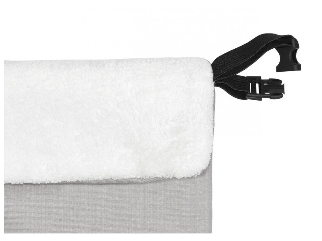 Praktické je uchycení ke kočárku pomocí elastické gumy se sponou, což umožňuje uchytit nánožník pevně na různých místech. Zatažením za šňůrku s brzdou se ve spodní části nánožníku vytvoří kapsa, ve které zůstanou nožičky dítěte v teple.