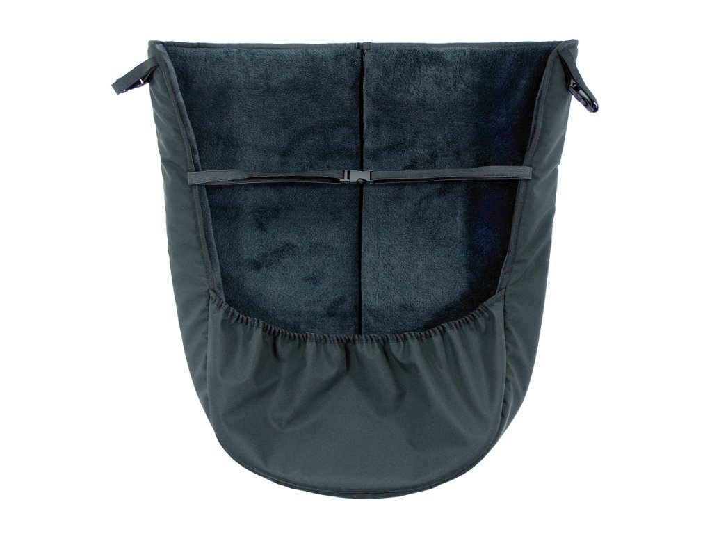 Nánožník Soft Black Move je univerzálně použitelný pro většinu sportovních a kombinovaných kočárků. Skládá se ze tří vrstev. První vrstvou je nepromokavý softshell, druhou vrstvou je kvalitní polyesterové rouno uvnitř a třetí vrstvou z vnitřní strany je teplý plyš. Ze spodní strany je vytvořena kapsa pro nohy, který je omyvatelná. Uchytit ke kočárku můžete pomocí delší gumy se sponou, která vede pod kočárkem a dvěmi sponami ve vrchní části k uchycení ke konstrukci kočárku.
