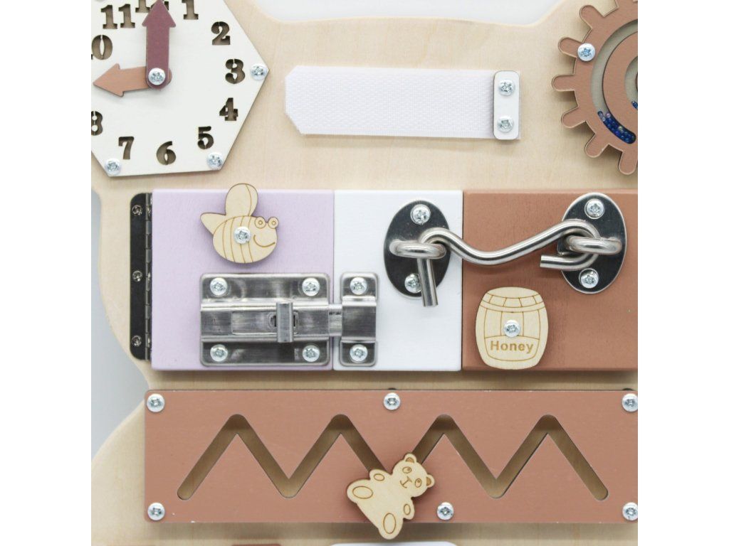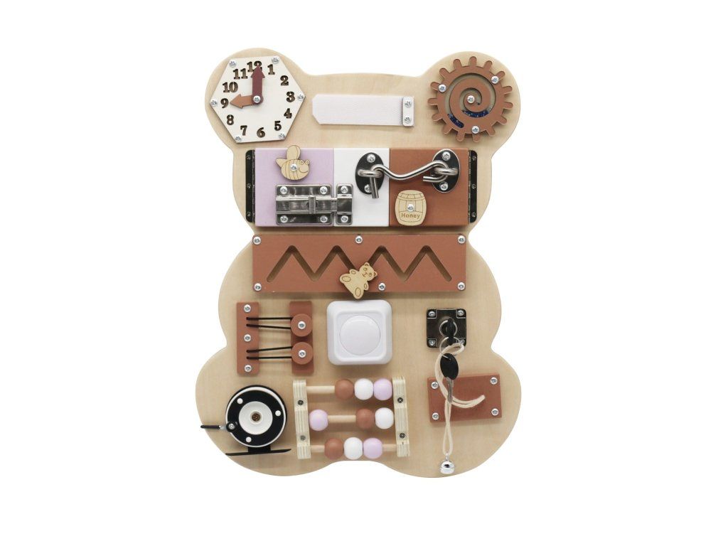 Dřevěná manipulační tabule Busy Board medvídek 10v1Dřevěná manipulační tabule Busy Board ve tvaru medvídka zabaví děti na dlouhé hodiny a zároveň podporuje jejich přirozený vývoj. Díky kombinaci různých prvků si dítě procvičuje jemnou motoriku, trpělivost i logické myšlení – a to zábavnou a bezpečnou formou. Klíčové vlastnosti a benefityRozvoj motoriky a soustředěníDítě manipuluje s různými prvky (zámky, kolečka, korálky), čímž si trénuje koordinaci ruky a oka i trpělivost. 10v1 – mnoho aktivit na jedné tabuliRůznorodé prvky podporují objevování, učení i samostatnou hru bez nudy. Smyslové a edukativní hraníRůzné materiály, tvary a barvy stimulují dětské smysly a podporují poznávání světa. Kvalitní a odolné materiályKombinace dřeva, kovu a plastu zajišťuje dlouhou životnost i při každodenním používání. Roztomilý design medvídkaPříjemné přírodní barvy a hravý motiv zaujmou každé dítě na první pohled. Co všechno tabule obsahuje?- hodiny s pohyblivými ručičkami- ozubené kolečko- zip- různé typy zámků a západek- labyrint s posuvným prvkem- korálky na počítání- otočné prvky a spínač- klíček se zámkem Každý prvek rozvíjí jinou dovednost a učí dítě praktickým činnostem z běžného života. Využití v praxiManipulační tabule je ideální pro domácí hraní, cestování i chvíle klidu. Pomáhá dětem učit se samostatnosti, například zapínání, odemykání nebo koordinaci pohybů.Skvěle se hodí pro děti, které rády objevují nové věci a potřebují zaměstnat ruce i mysl.Technické parametry- rozměr: cca 30 × 39 × 1,5 cm- materiál: dřevo, MDF, kov, plast- počet prvků: 10- motiv: medvídek- balení: kartonová krabice- hmotnost: cca 1,2 kg Bezpečnost a kvalitaVýrobek splňuje požadavky směrnice 2009/48/ES a je v souladu s nařízením 2023/988 o bezpečnosti hraček.Proč vybrat právě tuto manipulační tabuli?- podporuje přirozený vývoj dítěte- kombinuje zábavu a učení- vydrží roky díky kvalitnímu zpracování- ideální dárek pro malé objeviteleVýrobce: CARERO s.r.o., Písek 311, 739 84 Písek u Jablunkova, Česká republika Kontakt: info@carero.czDoplňkové parametry