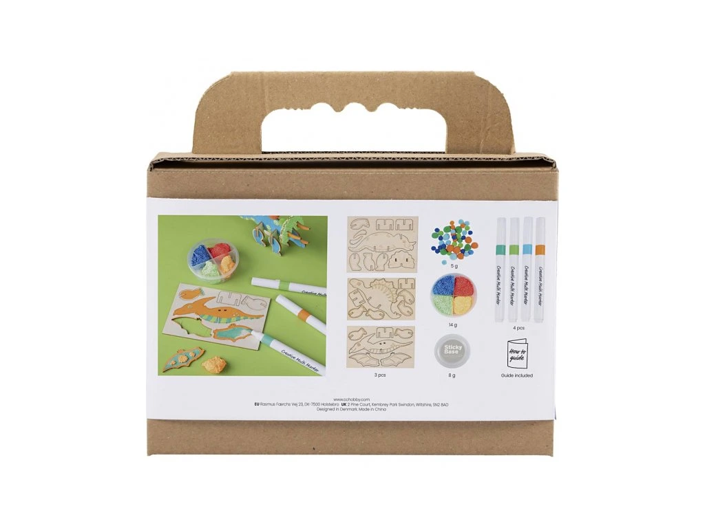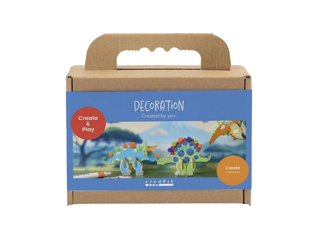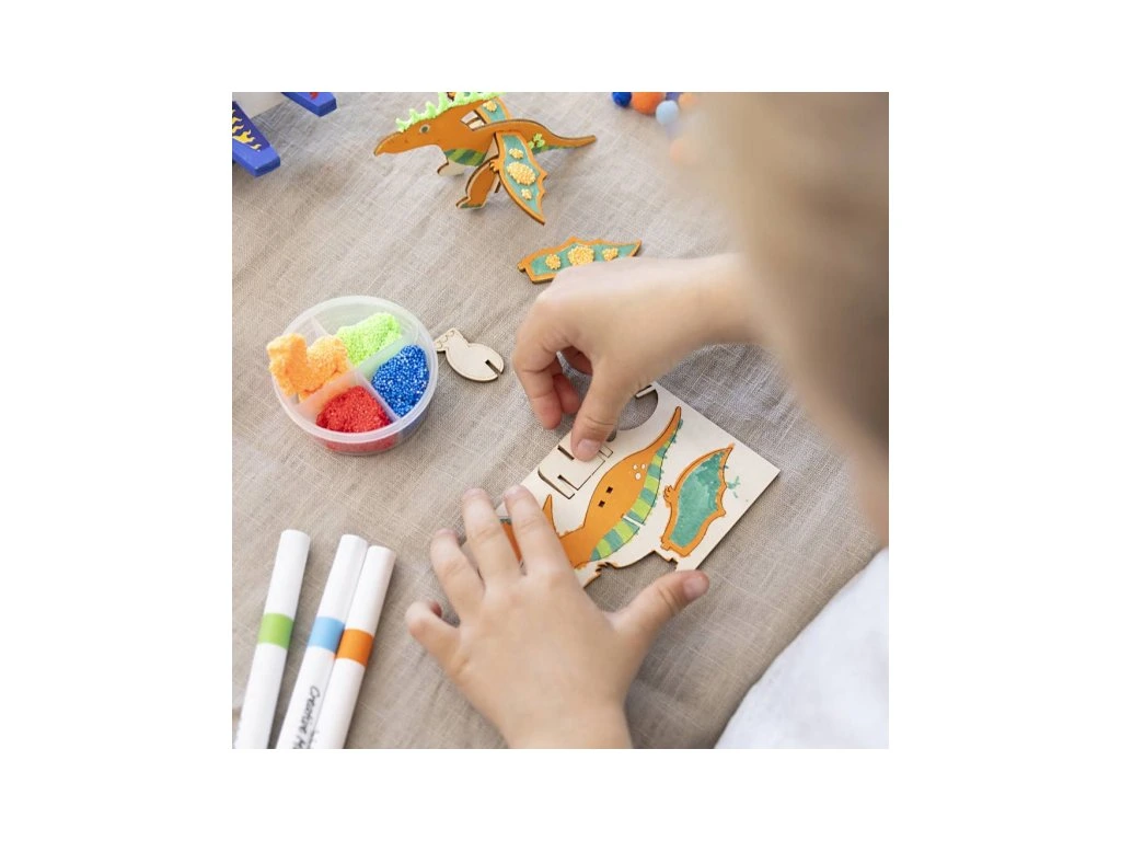 Originální kreativní sada pro vytvoření a dekorování dřevěných dinosaurů. Zábavná sada dětem umožní vybarvit a dozdobit vlastní dinosauří kolekci – tvořit divoké vzory fixami, přidat 3D detaily pomocí modelovací hmoty Foam Clay® a doplnit bambulkami. Výsledkem jsou tři originální dinosauři, kteří se stanou parádní dekorací do dětského pokoje. Zábava a rozvoj dovedností: • Děti si vyzkouší kombinaci vybarvování a kreativního zdobení • Foam Clay® podporuje jemnou motoriku a práci s prostorovým detailem (3D efekt) • Rozvíjí fantazii, soustředění a trpělivost při tvoření vlastních motivů • Hotové figurky jsou krásná dekorace a zároveň motivují k dalšímu tvoření Obsah balení: • Dřevěné figurky dinosaurů • Modelovací hmota Foam Clay® pro 3D zdobení a plastické detaily • Lepicí podstavce pro vystavení hotových dinosaurů • Bambulky pro dekorování hřbetu nebo ocasu • Sada barevných fixů • Podrobný návod s postupem krok za krokem Vhodné pro děti od 6 let.Doplňkové parametry