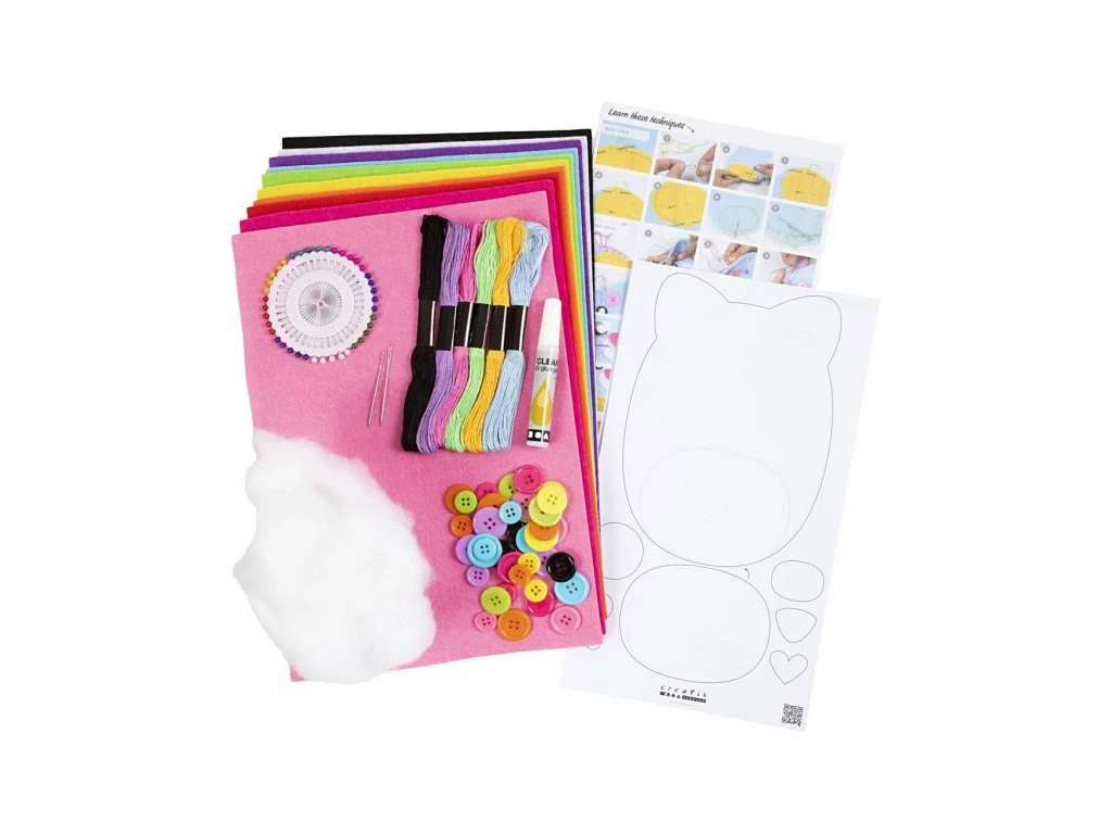 Originální kreativní sada pro první šití a výrobu plyšových medvídků. Skvělá startovací sada dětem (i starším začátečníkům) ukáže základy šití na roztomilém projektu – postupně si vytvoří 4–5 medvídků s různými vzhledy. Součástí jsou materiály i návod a navíc online výuková podpora: po naskenování QR kódu na krabičce se dostanete na stránku s videi, která krok za krokem vysvětlí základní stehy a bezpečně provede celým šitím. Zábava a rozvoj dovedností: • Děti se naučí základní šicí stehy a získají jistotu v práci s jehlou a nití • Rozvíjí jemnou motoriku, trpělivost a soustředění • Výsledek je hmatatelný a motivující – několik vlastnoručně ušitých medvídků • Získané dovednosti lze využít i v dalších projektech (zkoušení barev, typů nití a vlastních kombinací) Obsah balení: • Filc pro výrobu medvídků • Nitě • Knoflíky • Jehly • Výplň do hraček • Lepidlo • Nůžky • Vzorový arch • Podrobný návod + QR kód s videi pro základní stehy Vhodné pro děti od 6 let.Doplňkové parametry