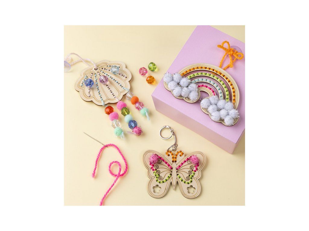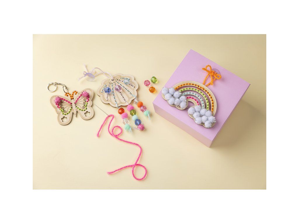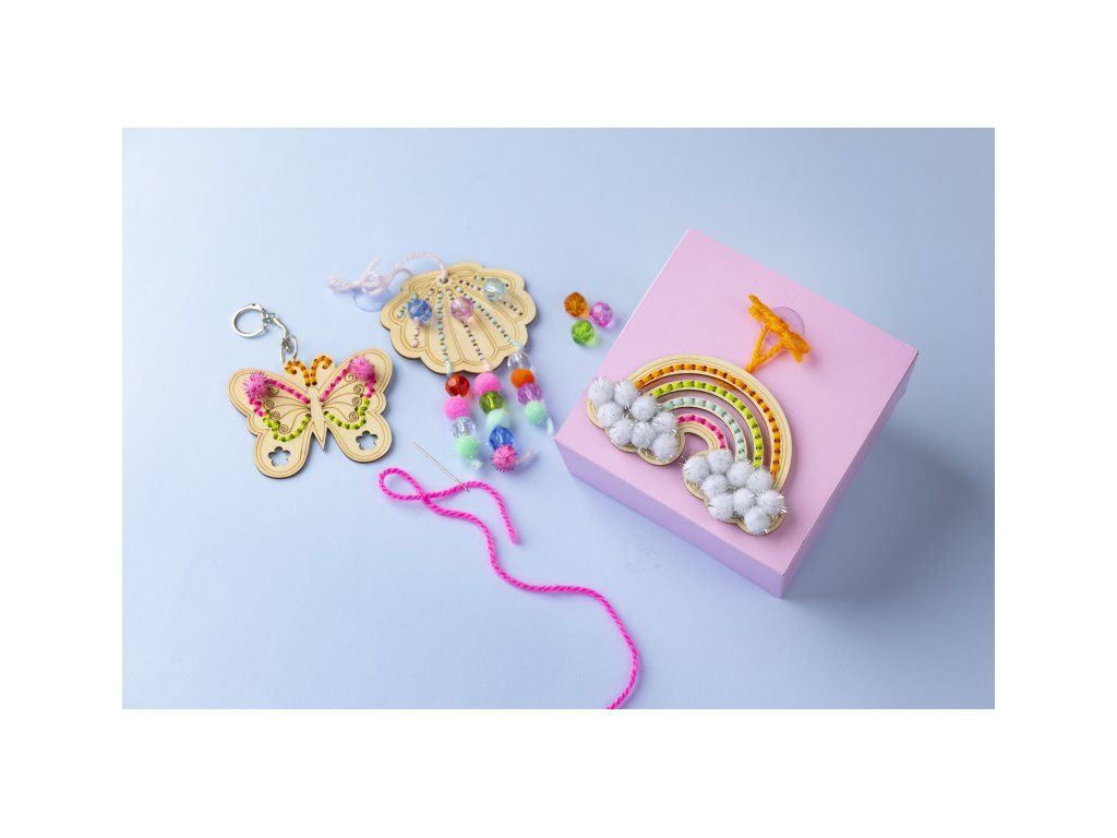 Užijte si radost z tvoření s touto originální sadou pro výrobu vyšívaných dřevěných ozdob. Sada vám umožní tvořit společně s dítětem – vyšívat, zdobit korálky a bambulkami a vytvořit roztomilé dekorace i doplněk na tašku. Děti si vyrobí jednu klíčenku a dvě závěsné ozdoby do okna, které si mohou vytvořit v oblíbených barvách. Ideální aktivita na deštivé odpoledne, klidný čas doma nebo rodinné tvoření. Zábava a rozvoj dovedností: • Děti si vyzkouší vyšívání na dřevěných tvarech a trénují jemnou motoriku • Možnost dekorace korálky a bambulkami podporuje kreativitu a cit pro barvy • Hotové výrobky mají praktické využití: klíčenka jako přívěsek na tašku a ozdoby do okna • Skvělé i jako dárek pro prarodiče nebo jako dekorace do dětského pokoje Obsah balení: • Dřevěné tvary k vyšívání • Akrylová příze • Vyšívací jehla • Bambulky • Fazetové korálky • Kroužek na klíče s řetízkem • Přísavky pro zavěšení do okna • Podrobný návod s postupem krok za krokem Vhodné pro děti od 7 let.Doplňkové parametry