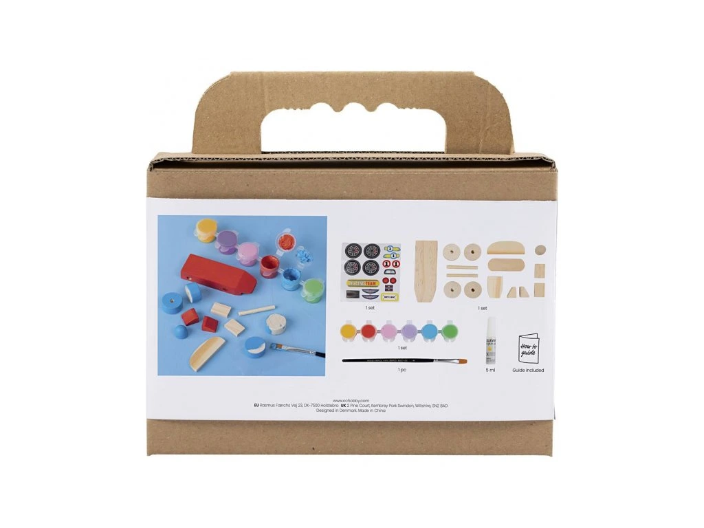 Originální kreativní sada pro výrobu dřevěného závodního auta dětem umožní postavit si vlastní hračku od úplného začátku – nejprve jednotlivé díly nabarví, nechají zaschnout, poté je slepí a nakonec dozdobí samolepkami. Výsledkem je jedinečné autíčko připravené na hraní i vystavení v dětském pokoji. Zábava a rozvoj dovedností: • Děti si vyzkouší celý proces tvorby – od malování až po sestavení hračky • Rozvíjí kreativitu, jemnou motoriku a koordinaci při práci s menšími díly • Učí trpělivosti (čekání na zaschnutí barvy) a podporuje pocit „dokázal/a jsem to“ • Hotová hračka je ideální na hraní i jako dekorace do dětského pokoje Obsah balení: • Dřevěné díly pro sestavení auta • Barvy pro nabarvení jednotlivých částí • Štětec • Lepidlo pro sestavení • Samolepky pro finální dekorování • Podrobný návod s postupem krok za krokem Vhodné pro děti od 8 let.Doplňkové parametry