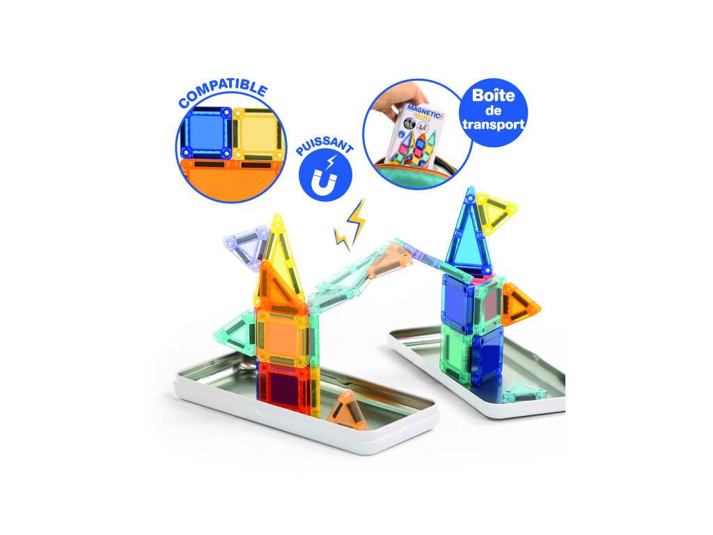 Magnetická stavebnice Ludi je kompaktní cestovní sada, která zabaví děti doma i na cestách. Obsahuje 26 barevných magnetických dílků a kovovou krabičku, která slouží zároveň jako úložný prostor i jako magnetická hrací plocha. Děti mohou dílky připevňovat na víko nebo dovnitř krabičky a vytvářet jednoduché vzory i vlastní stavby ve 2D a 3D. Díky pevnému boxu a tomu, že všechny dílky jsou vždy pohromadě, je sada ideální do auta, vlaku nebo na dovolenou. Hra podporuje kreativitu, logické uvažování, prostorovou představivost a jemnou motoriku. Kompaktní magnetická stavebnice vhodná na doma i na cesty 26 magnetických dílků v různých tvarech a barvách Kovová krabička funguje jako hrací plocha i úložný box Možnost stavění ve 2D i 3D Podporuje kreativitu, logiku, koordinaci oko ruka a jemnou motoriku Vhodné jako klidná aktivita při čekání i během cestování Obsah balení: 26 magnetických dílků v kovové krabičce Složení: MABS Vhodné pro děti od 3 let.Doplňkové parametry
