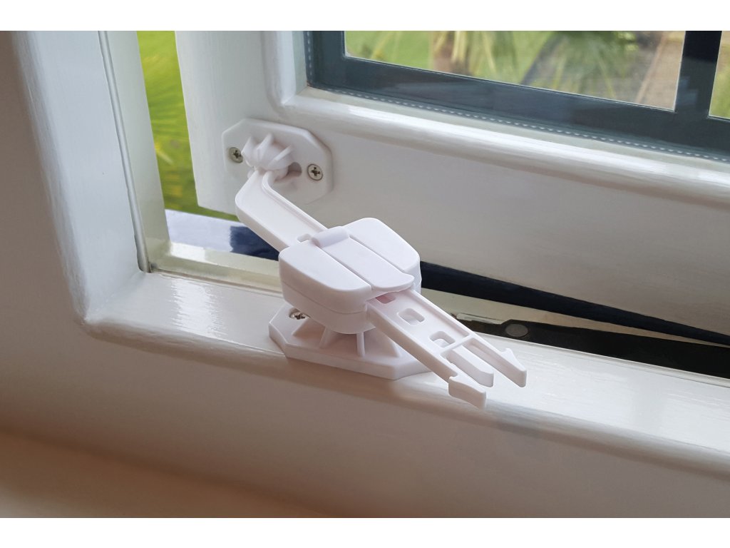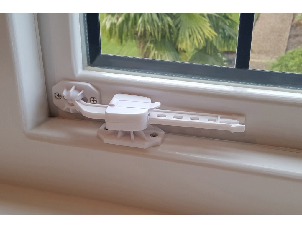 Pojistka okna Zámek okna jde snadno namontovat, předchází riziku vypadnutí z okna a a zároveň umožňuje větrání. Lze připevnit na většinu typů oken, k dispozici dva typy držáků. Dodáváno včetně šroubů do dřeva.Doplňkové parametry