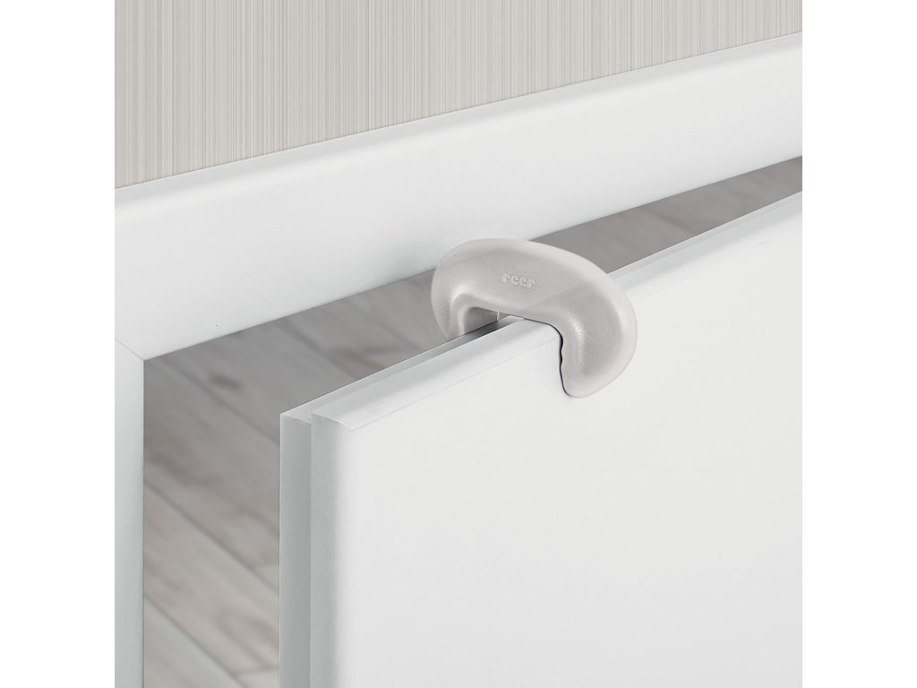 Zarážka na dveře 1ks transparentní Podrobnosti: - chrání dětské ruce před uskřípnutím ve dveřích - pevné a odolné - speciální žebrovaná konstrukce zajišťuje pevné uchycení - pro tloušťku křídla dveří od 30 do 45 mm testováno podle DIN EN 16654: 2018 - Barva: transparentní - Materiál: plast - Obsah balení: 1 ks zarážky na dveře - Velikost balení: 9,7 cm x 3,5 cm x 12 cm (DxŠxV)Doplňkové parametry