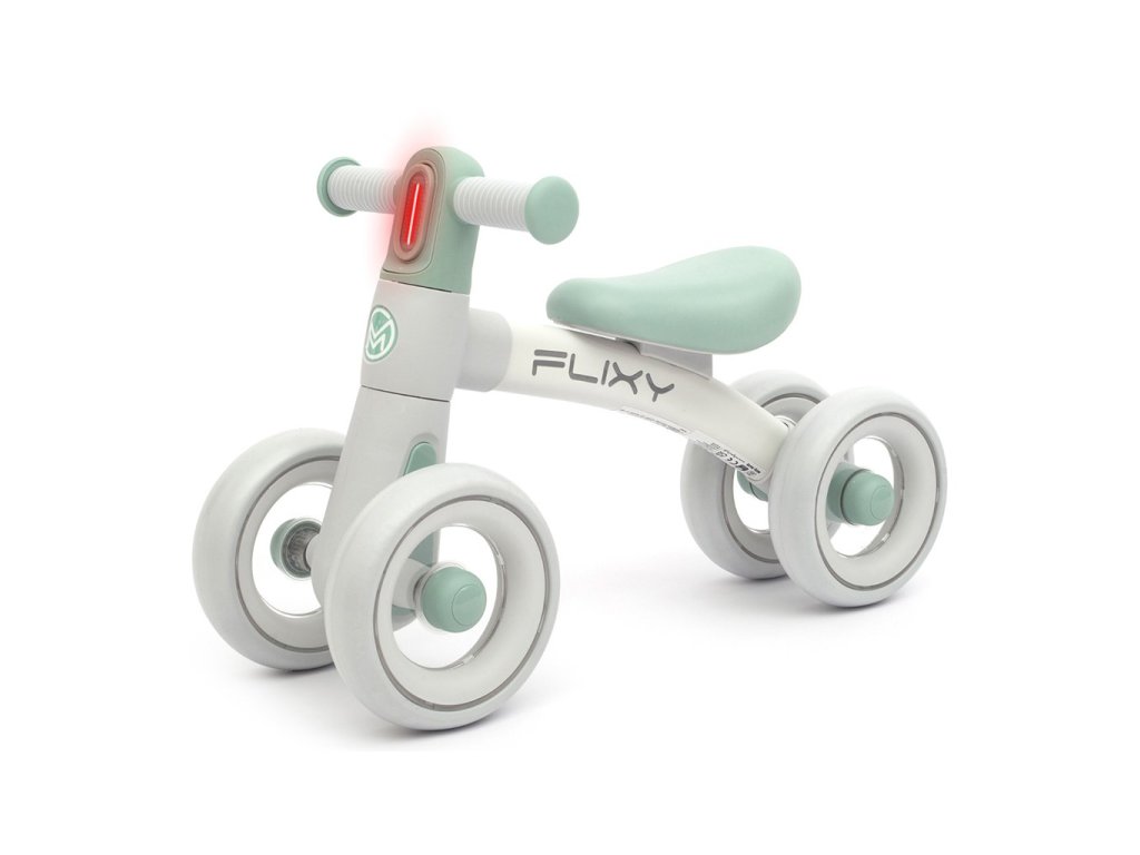 Dětské odrážedlo FLIXY 4 kola s LED světlem Milly Mally – stabilní odrážedlo pro děti 12m+ Dětské odrážedlo FLIXY je ideální první odrážedlo pro nejmenší děti od 12 měsíců. Díky čtyřem kolům nabízí maximální stabilitu, podporuje rozvoj rovnováhy a pomáhá dětem získat jistotu při prvních jízdách. Moderní design, LED světlo v řídítkách a lehká konstrukce dělají z tohoto odrážedla skvělého parťáka do interiéru i ven. Proč si vybrat dětské odrážedlo FLIXY? 4 stabilní kola – vyšší bezpečnost a jistota při jízděLehká, ale pevná konstrukce – snadná manipulace pro děti i rodičeErgonomické sedátko z eko kůže – pohodlí i při delší jízděMěkké rukojeti – přizpůsobené dětským rukámLED světlo v řídítkách – atraktivní prvek i lepší viditelnostPěnová EVA kola (17 cm) – tichá a plynulá jízda bez rizika defektu Díky promyšlené konstrukci je odrážedlo pro děti FLIXY skvělou volbou pro první zkušenosti s pohybem na kolech. Dítě se učí koordinaci, stabilitě a zároveň si užívá zábavu. Ideální první odrážedlo pro nejmenší Toto dětské odrážedlo od 1 roku je navrženo s důrazem na bezpečnost a komfort. Čtyřkolová verze je stabilnější než klasické dvoukolové modely, což ocení zejména rodiče začínajících jezdců. LED světlo zabudované v řídítkách (2× AAA/LR03 – nejsou součástí balení) dodává jízdě hravý efekt a motivuje dítě k pohybu. Odrážedlo je vhodné pro použití doma i venku na rovném povrchu. Moderní design a jemné barvy FLIXY zaujme elegantním vzhledem v tlumených odstínech, které si oblíbí děti i rodiče. Stylové provedení dělá z odrážedla nejen praktické vozítko, ale i krásný dárek. Bezpečnost a kvalita Pevná konstrukce s nosností až 25 kgSplňuje evropské bezpečnostní normyRychlá a jednoduchá montážZáruka 1 rok Odrážedlo je stabilní, odolné a připravené na každodenní dětská dobrodružství. Technické parametry Celková výška: 36 cmCelková délka: 57 cmCelková šířka: 24 cmVýška sedátka: 26 cmRozměr sedátka: 20 × 12 cmPrůměr kol: 17 cmRozchod předních kol: 21 cmRozchod zadních kol: 15 cmHmotnost netto: 2,3 kgHmotnost brutto: 2,8 kgRozměry balení: 43 × 18 × 27 cm Podpora pohybu hravou formou Dětské odrážedlo FLIXY pomáhá rozvíjet motoriku, stabilitu i sebevědomí dítěte. Je to ideální první krok před přechodem na klasické kolo nebo větší odrážedlo. Dopřejte svému dítěti radost z pohybu – objednejte dětské odrážedlo FLIXY ještě dnes a podpořte jeho zdravý vývoj přirozenou cestou.Doplňkové parametry