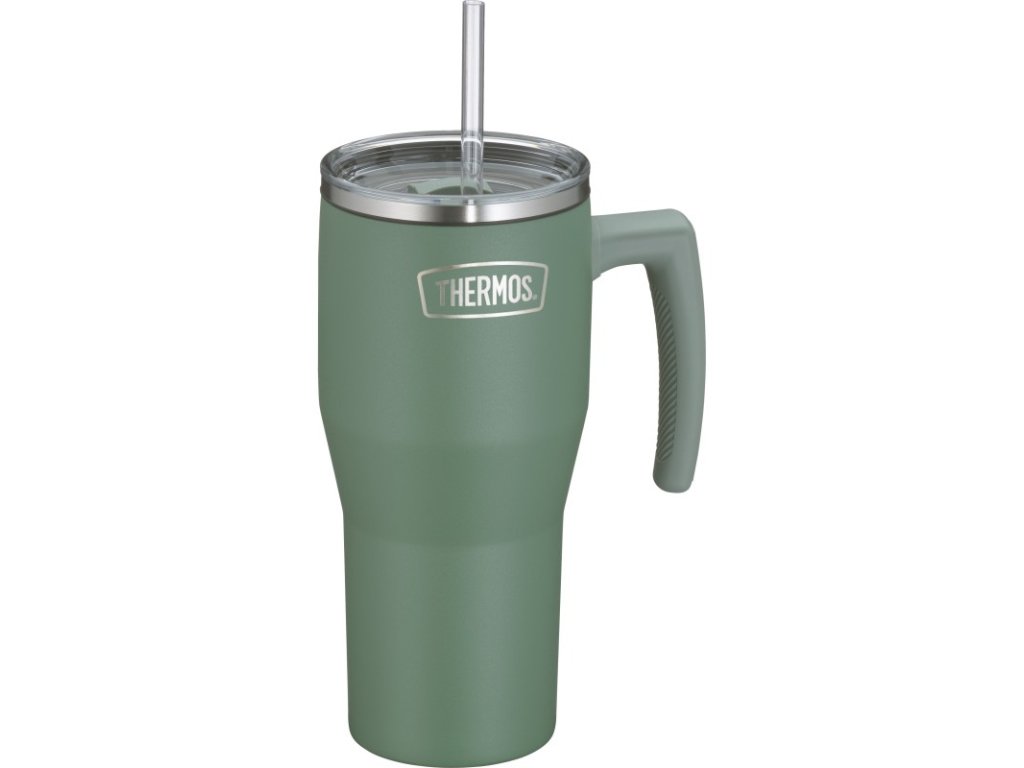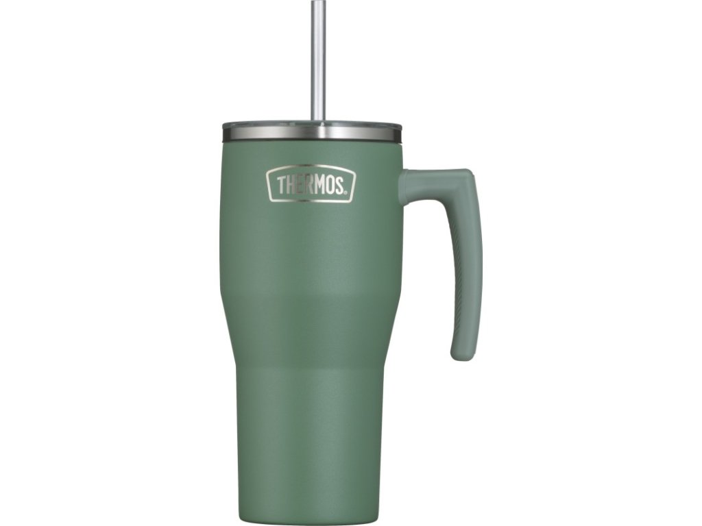 Termohrnek Refreshing s madlem a brčkem - matná zelená