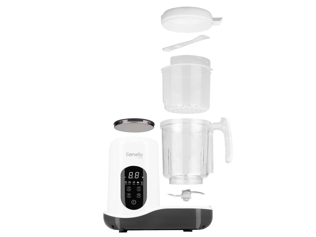 lionelo BabyMenu je moderní zařízení, které nabízí funkce napařování, mixování, rozmrazování, ohřívání a sterilizace, což vám umožní připravit výživné jídlo v krátkém čase. Naší prioritou je podporovat rodiče při vytváření zdravých stravovacích návyků – díky možnostem BabyMenu mohou pečovatelé snadno a rychle vytvořit zdravé a pestré jídlo bez ohledu na podmínky. S jeho pomocí mohou rodiče nejen ohřívat mléko nebo zavařovací sklenici, ale také v páře připravovat zeleninu, ovoce, ryby nebo maso nebo dokonce mixovat jídlo. Díky tomu je rozšiřování jídelníčku vašeho miminka mnohem jednodušší a příprava jídla proběhne v hygienických podmínkách.