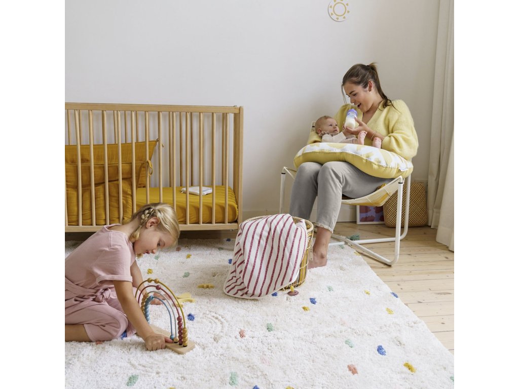 Doomoo Softy je multifunkční polštář ideální jak pro maminky, tak i pro děti.Ovinutím kolem pasu rodiče je ideální pro použití během kojení či krmení děťátka z láhve. Dítě může ležet nebo sedět v pohodlí vzhledem k jeho věku.Tento polštář pomáhá maminkám a dětem relaxovat tak, aby cítili úlevu a užívali si skutečný pocit naprosté pohody.Potah lze prát v pračce na 30°C. Nelze sušit v sušičce. Vnitřní polštář lze jednou za čas vyprat na 30°. Zabalte ho sáčeku na praní, pro jeho ochranu. Nechte uschnout na vzduchu.Materiál: Obal- 95% bavlna, 5% elastan Vnitřní obal: 92% polyester, 8% elastanNáplň: mikro polystyrenové kuličkyRozměr: 150 cmCertifikováno OEKO-Tex a GOTSDoplňkové parametry