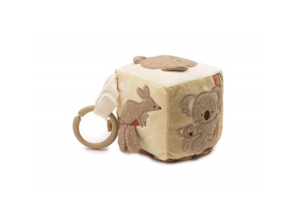 Měkká plyšová kostka s krásnými motivy klokana, koaly a medvídka je díky svému provedení snadno uchopitelná malými dětskými ručičkami. Různorodé textury, vyšívané ilustrace, bezpečné zrcátko, chrastění i šustění lákají dítě ke zkoumání. Hračka stimuluje smysly a podporuje rozvoj motorických dovedností dítěte. Rozměry: 11 x 11 x 11 cm Složení: 100% polyester, výplň 100% polyester Možno prát v ruce. Vhodné pro děti od narození.Doplňkové parametry