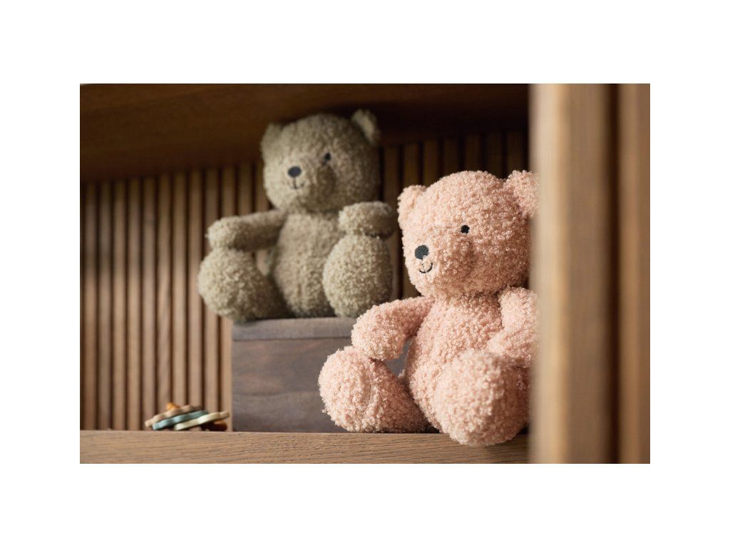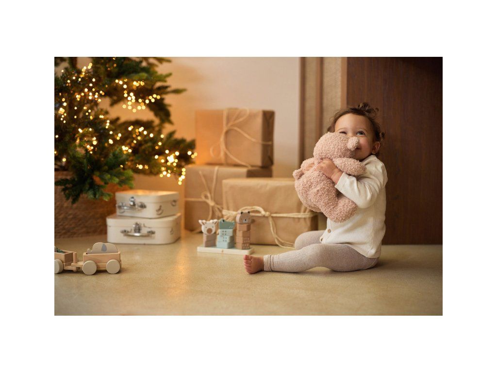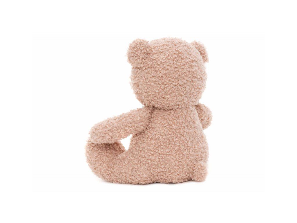 Roztomilý medvídek z měkkého buklé materiálu je vhodný jako mazlík do postýlky pro klidné usínání. Může se stát součástí mnoha dětských her i sloužit jako krásná dekorace v dětském pokoji. Rozměry: 25 x 18 x 16 cm Složení: 100% polyester, výplň: 100% polyester Možno prát v ruce.Doplňkové parametry