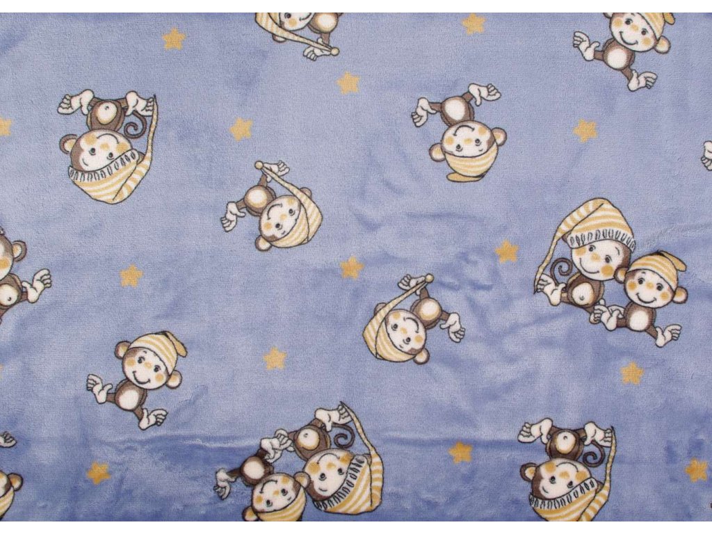 Dětská deka z materiálu Flanell fleece (100% mikropolyester) s motivem opiček, její rozměr je cca 100 x 150 cm. Praní na 30° C, nesmí se žehlit. Česká výroba.Doplňkové parametry