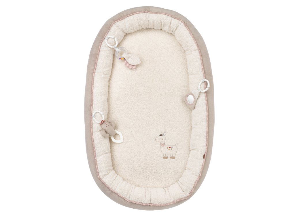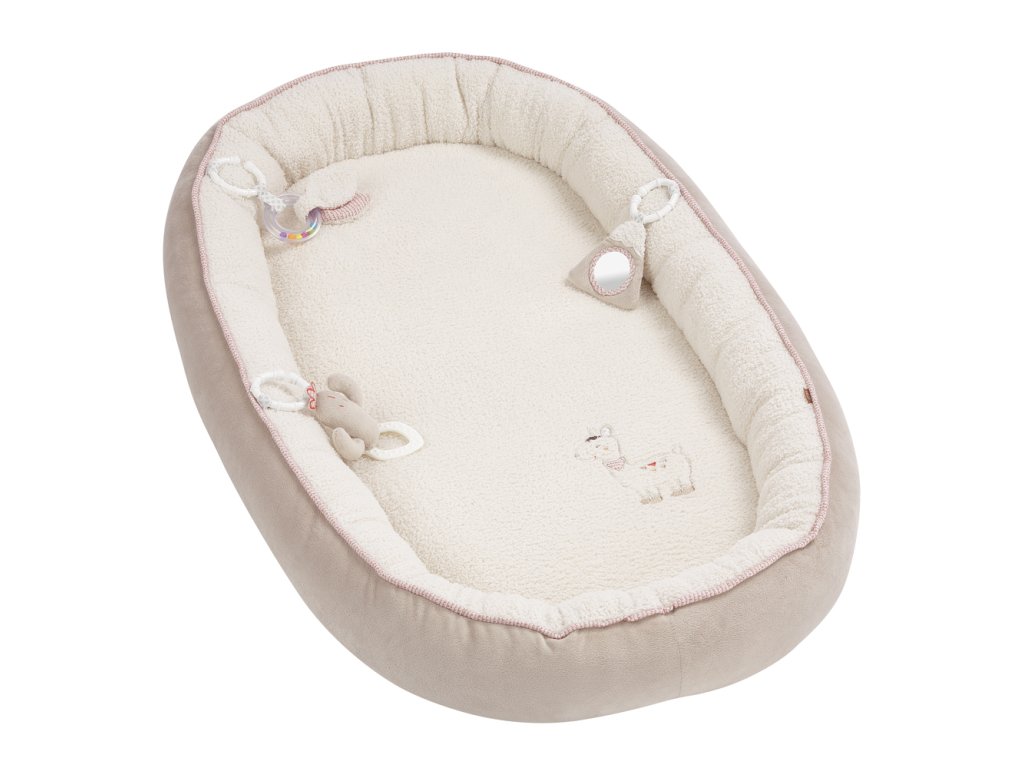 Hnízdečko s množstvím vychytávek Díky obzvláště měkkému a polstrovanému okraji získá dítě optimální pohodlí a pocit ochrany a bezpečí. Ideální na doma i na cesty. Hnízdečko pro miminko v designu mořské panny je všestranné a lze jej použít jako postýlku, vložku do postýlky, podložku na mazlení nebo jako hnízdečko na pohovce, ať už doma nebo na návštěvě u babičky a dědečka. Tři přívěsky s mořskými zvířaty zvyšují pozornost dítěte a poskytují mu zábavu. Pískátko, chrastítko, šustící papír a zrcátko podporují motoriku dítěte již od narození. Informace o výrobku: Pro kojence a batolata od 0+ měsícůHnízdo: vrchní strana: velur (100% polyester)Lemování: mušelín (100% bavlna)Spodní strana: 100% polyesterVýplň: 100% polyesterPolstrování: 100% polyuretanIdeální jako dárek k narození dítěte, ke křtinám nebo jako dárek k narozeninám pro kojence a batolata.Testováno na bezpečnost nezávislými zkušebními ústavy.Doplňkové parametry