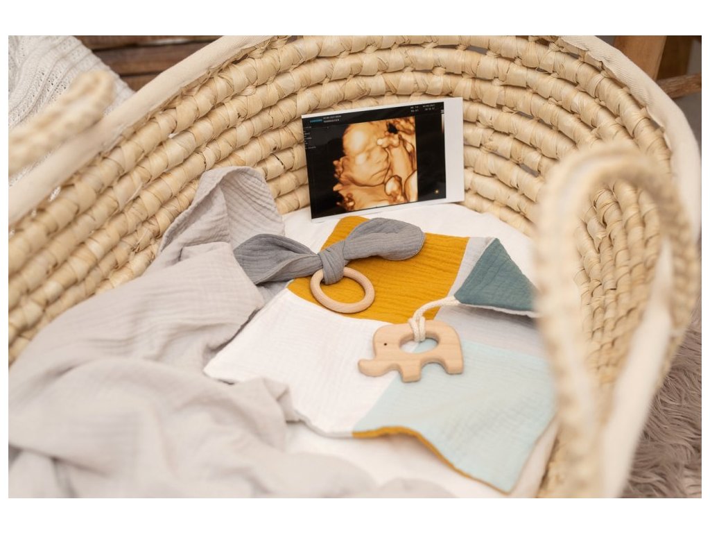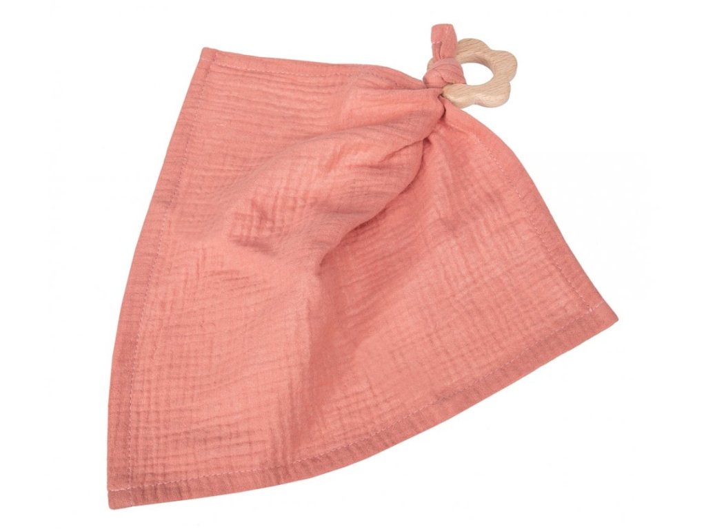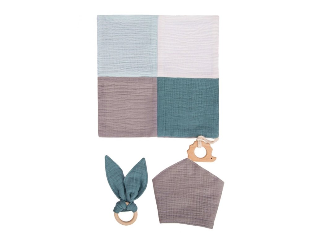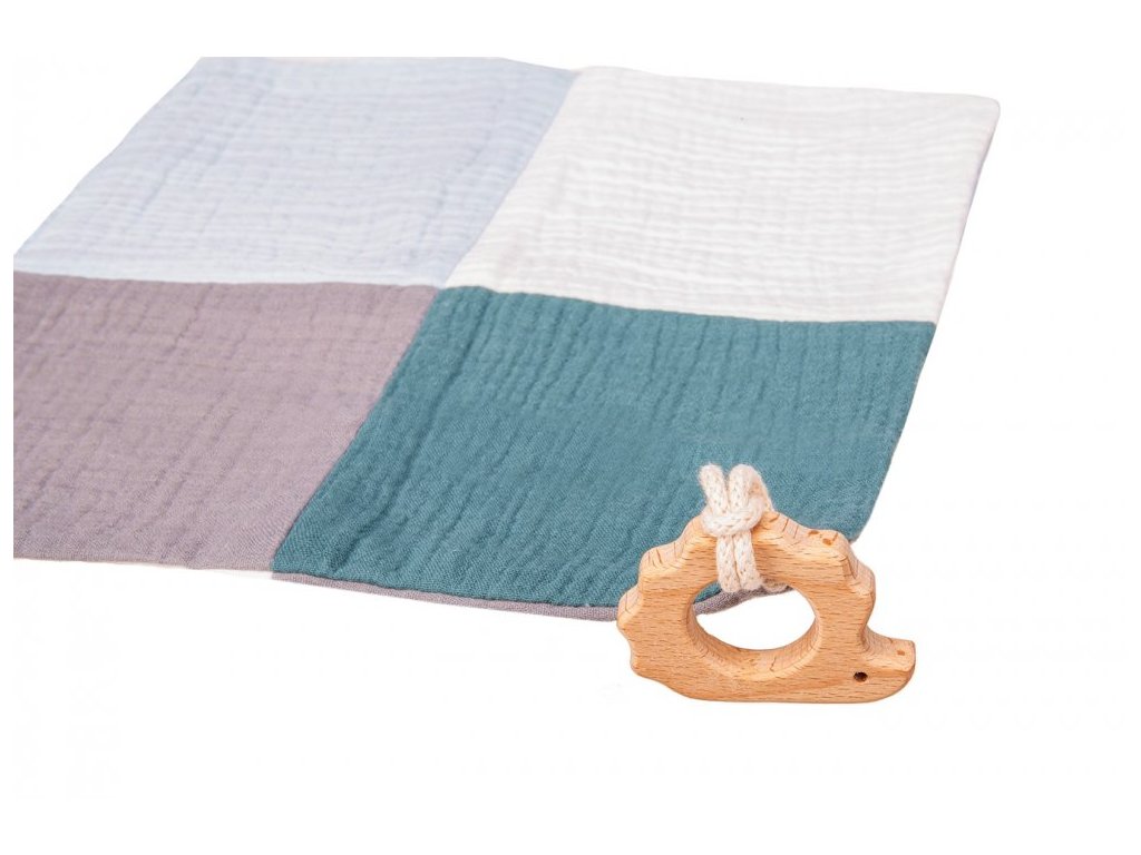 Mušelín nás naprosto učaroval. Jsme tak nadšení jeho měkkostí, strukturou a barevným provedením, že při návrhu naší letošní kolekce byla mušelínová edice jasnou volbou! Právě měkkost mušelínu jej předurčila ke vzniku novinky v naší nabídce - sady slintáku, kousátka a mazlící dečky (usínáčka, muchláčka). Atraktivitu kousátka a mazlící dečky podtrhují zdravotně nezávadné dřevěné komponenty na hraní, kousání či pohodlný úchop. Dvouvrstvý slinták má dvě patentky pro regulaci velikosti.