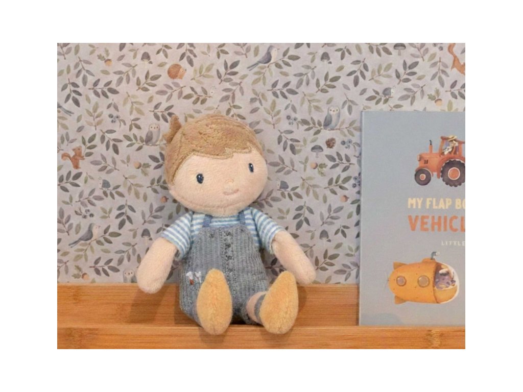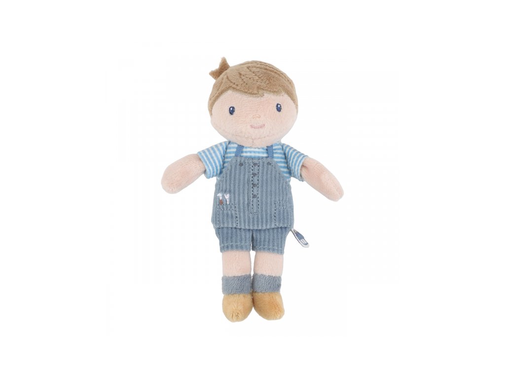 Roztomilá mini plyšová panenka v podobě chlapečka Jima z měkkého jemného materiálu je ideální jako první panenka pro vaše dítě. Panenka je vhodná na hraní i mazlení a bude se s ní i krásně usínat! Výplň je vyrobena ze 100% recyklovaného polyesteru s certifikací GRS (Global Recycled Standard). Rozměry: 13 x 10 x 4 cm Složení: 100% polyester Možno prát v pračce na 30°C. Vhodné pro děti od 12 měsíců.Doplňkové parametry