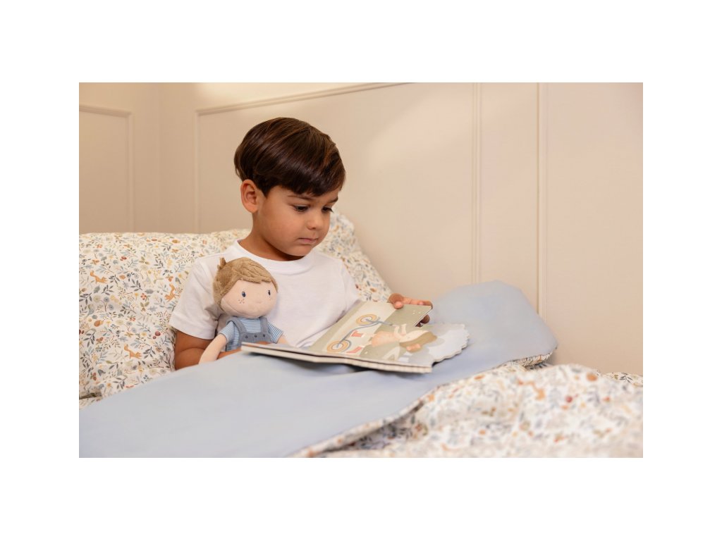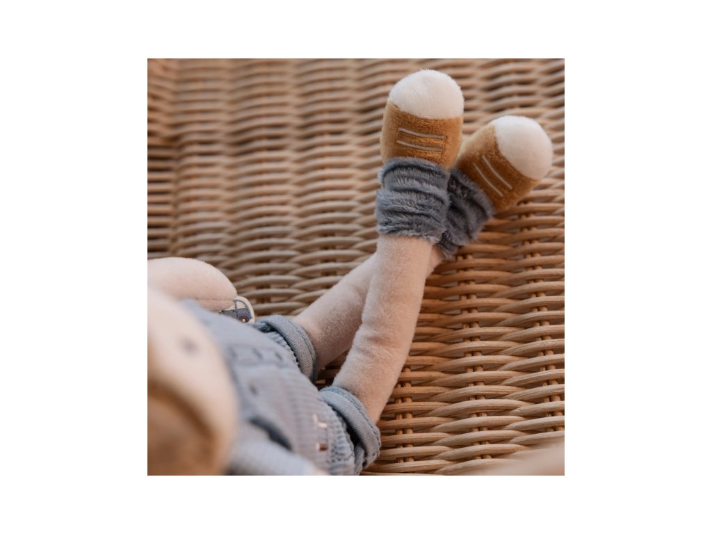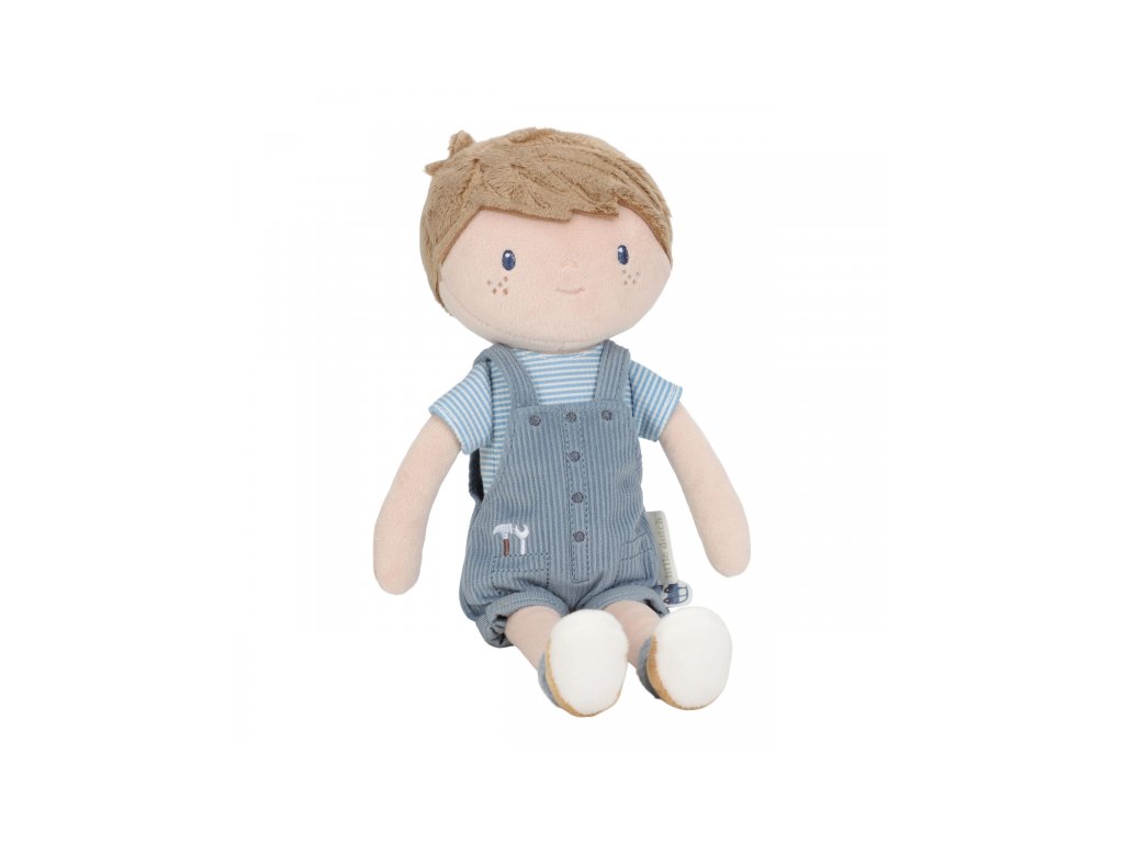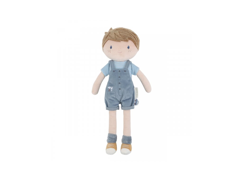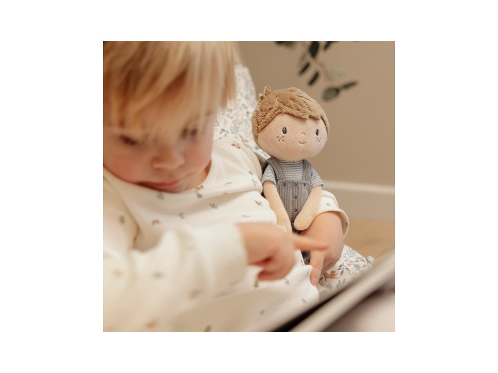 Originální plyšová panenka v podobě chlapečka Jima v manšestrových kalhotách s laclem. Panenka z měkkého jemného materiálu je ideální jako první panenka pro vaše dítě, je vhodná na hraní i mazlení a bude se s ní i krásně usínat! Výplň je vyrobena ze 100% recyklovaného polyesteru s certifikací GRS (Global Recycled Standard). Rozměry: 35 x 14 x 7 cm Složení: 100% polyester Možno prát v pračce na 30°C. Vhodné pro děti od 12 měsíců.Doplňkové parametry