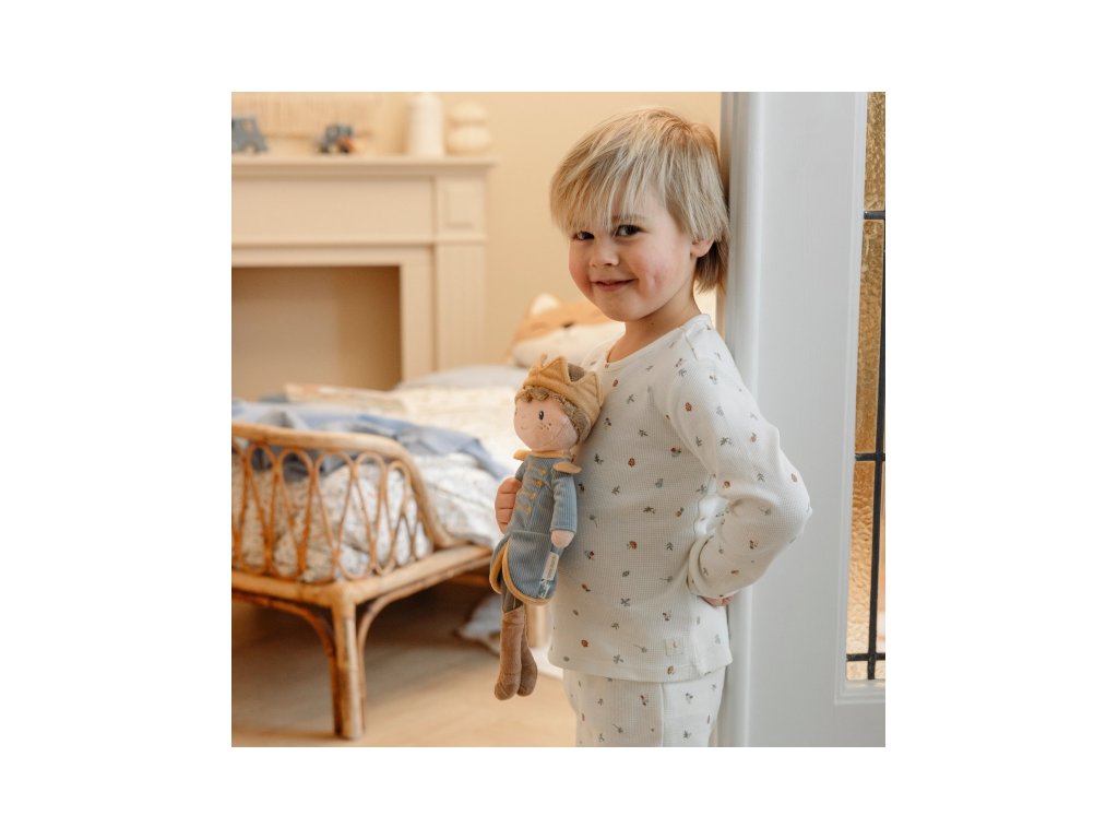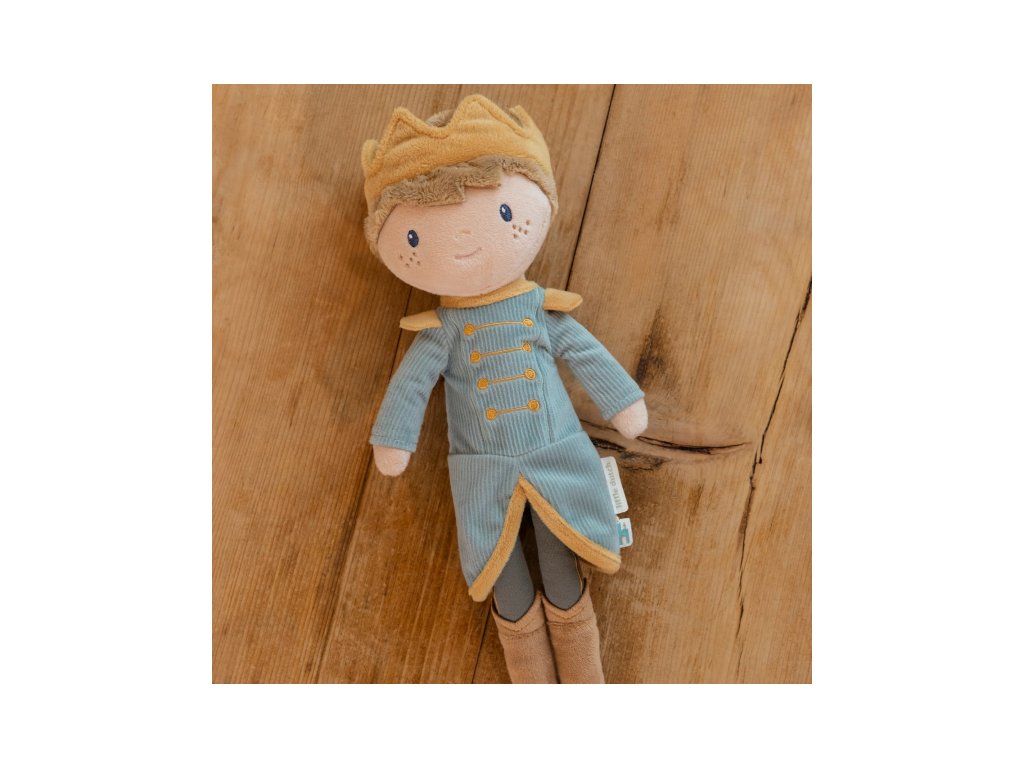 Originální plyšová panenka v podobě prince Jima z měkkého jemného materiálu je oblečená do krásného obleku s korunkou na hlavě. Je vhodná na hraní i mazlení a bude se s ní i krásně usínat! Výplň je vyrobena ze 100% recyklovaného polyesteru s certifikací GRS (Global Recycled Standard). Rozměry: 35 x 14 x 7 cm Složení: 100% polyester Možno prát v pračce na 30°C. Vhodné pro děti od 12 měsíců.Doplňkové parametry