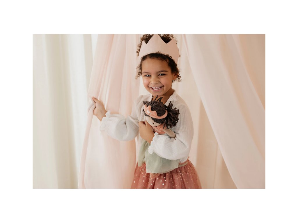 Originální plyšová panenka princezna Evi z měkkého jemného materiálu je oblečená do krásných dlouhých šatiček. Je vhodná na hraní i mazlení a bude se s ní i krásně usínat! Výplň je vyrobena ze 100% recyklovaného polyesteru s certifikací GRS (Global Recycled Standard). Rozměry: 35 x 14 x 8 cm Složení: 100% polyester Možno prát v pračce na 30°C. Vhodné pro děti od 12 měsíců.Doplňkové parametry