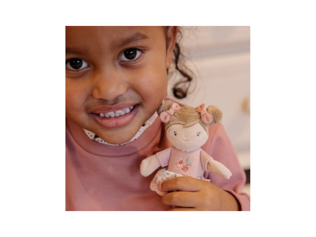 Roztomilá mini plyšová panenka Rosa z měkkého jemného materiálu je ideální jako první panenka pro vaše dítě. Panenka je vhodná na hraní i mazlení a bude se s ní i krásně usínat! Výplň je vyrobena ze 100% recyklovaného polyesteru s certifikací GRS (Global Recycled Standard). Rozměry: 13 x 9 x 3 cm Složení: 100% polyester Možno prát v pračce na 30°C. Vhodné pro děti od 12 měsíců.Doplňkové parametry