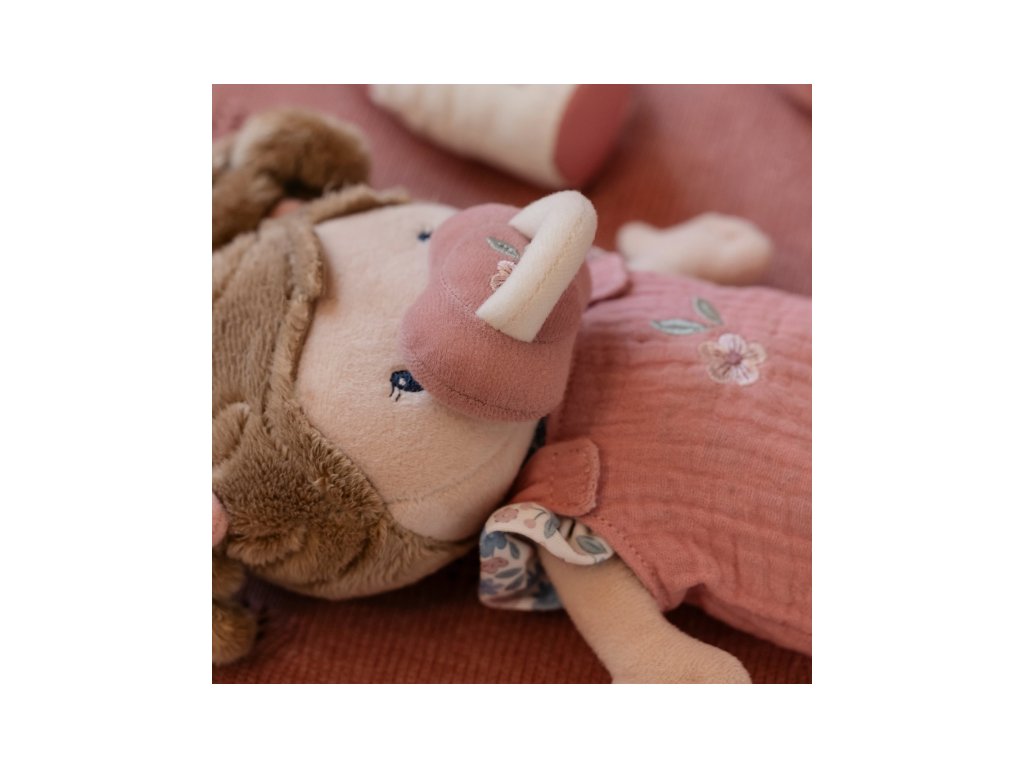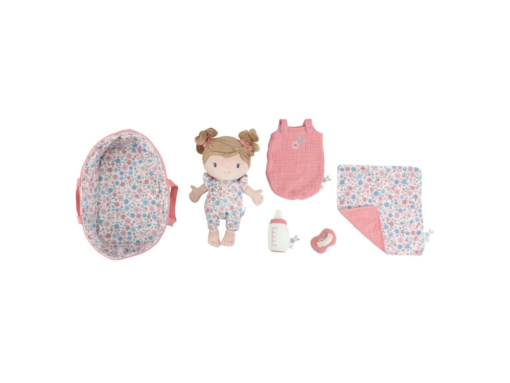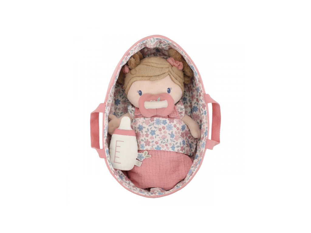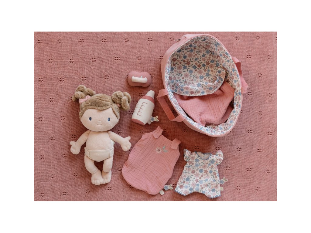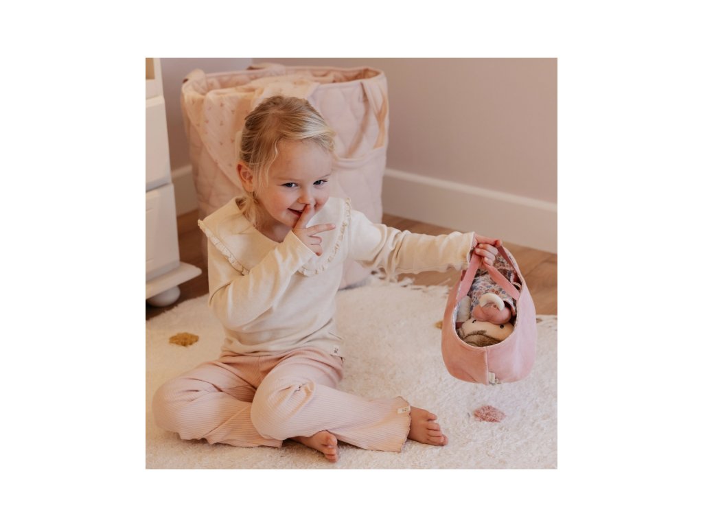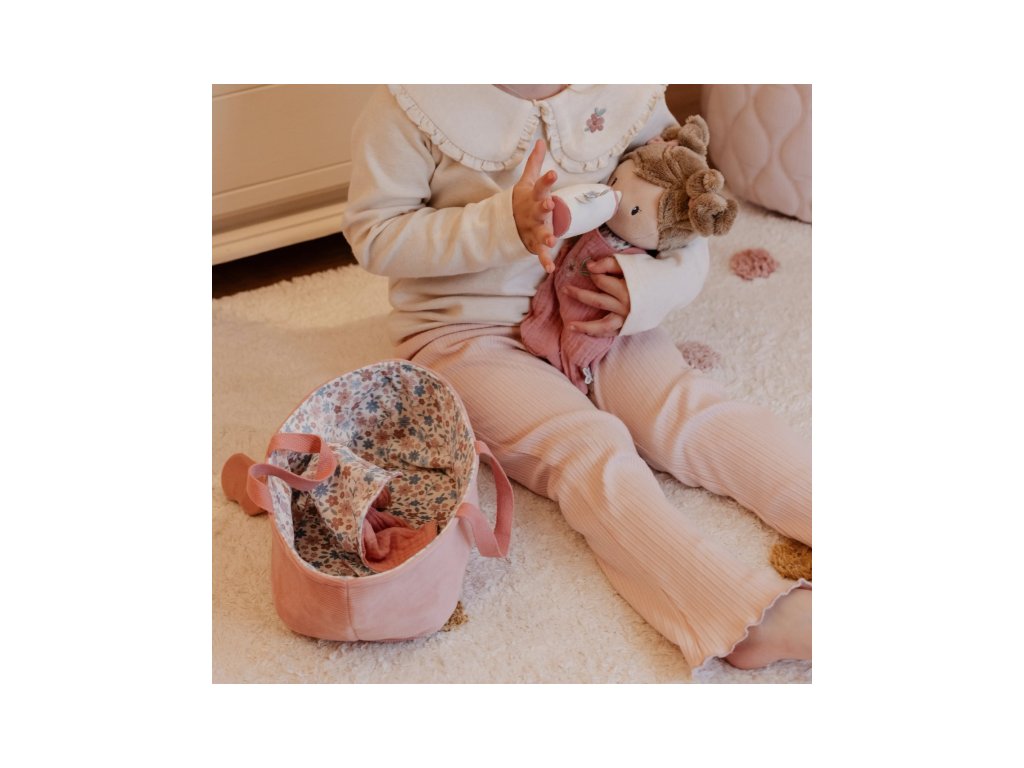 Něžná plyšová panenka Rosa se chce mazlit a chovat a díky praktickému košíku na spaní si ji můžete vzít kamkoli s sebou. Péče o takové miminko dá zabrat, a děti se tak hravou formou učí odpovědnosti. Rosu je potřeba pravidelně nakrmit nebo jí dát dudlík. Na spaní je potřeba Rosu uložit do spacího pytle a přikrýt dekou, aby jí nebyla zima. Výplň je vyrobena ze 100% recyklovaného polyesteru s certifikací GRS (Global Recycled Standard). Rozměry: 25 x 22 x 9 cm Složení: 50% polyester, 50% bavlna Možno prát v ruce. Vhodné pro děti od 12 měsíců.Doplňkové parametry