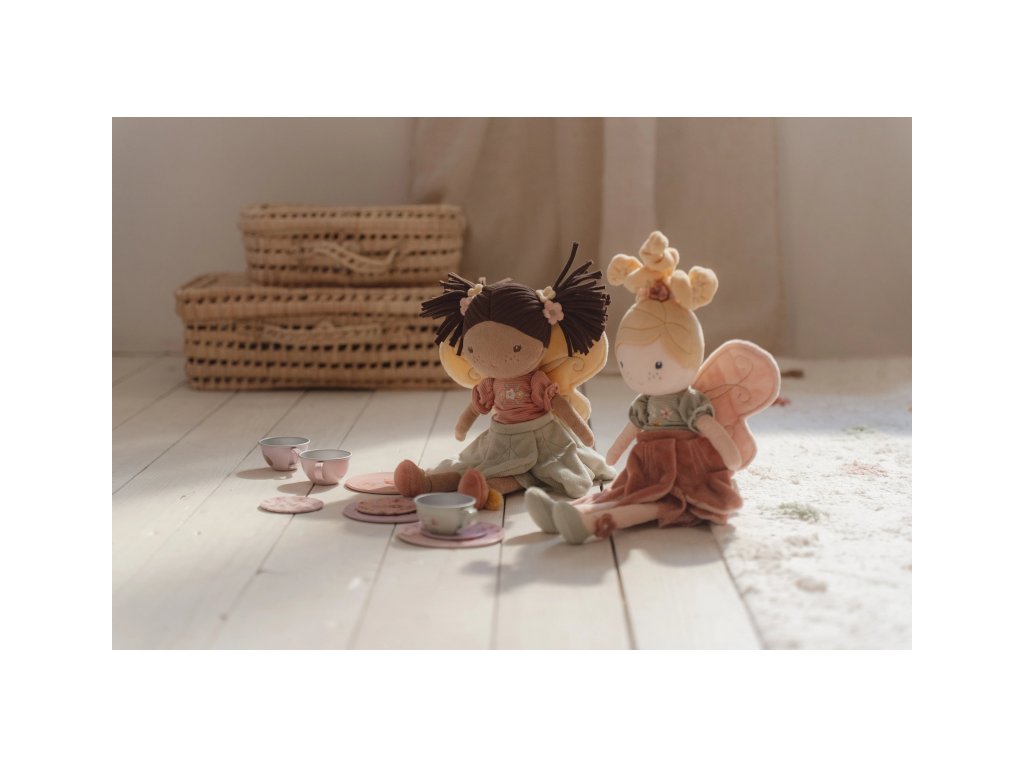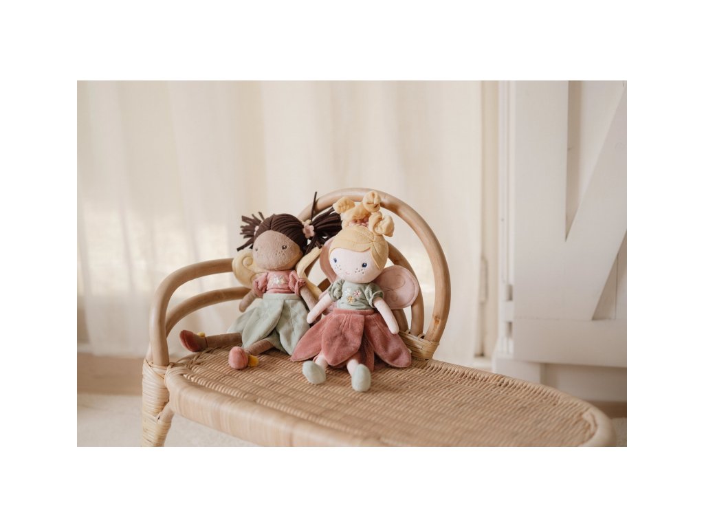 Z kouzelné květinové zahrady k vám domů přichází neodolatelná víla Evi! Panenka z jemnoho měkkého materiálu s křídly a krásnými šaty je vhodná na hraní i mazlení a bude se s ní i krásně usínat! Výplň je vyrobena ze 100% recyklovaného polyesteru s certifikací GRS (Global Recycled Standard). Rozměry: 35 x 19 x 8 cm Složení: 100% polyester Možno prát v pračce na 30°C. Vhodné pro děti od 12 měsíců.Doplňkové parametry