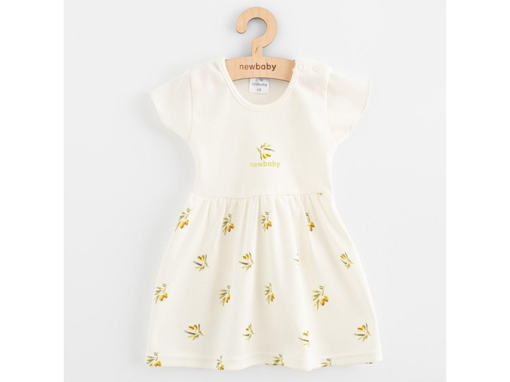 Krásné kojenecké šatičky české značky New Baby Olivy pro všechny malé parádnice. Šatičky s nařasenou sukýnkou jsou lehounké, velmi příjemné při nošení a zdobeny potiskem olivek. Pro snadné oblékáni mají zapínaní na cvoček. Věříme, že Vás naše originální kolekce uspokojí svou kvalitou, jemností a designem. Složení: 100% organická bavlna. OEKO-TEX STANDARD 100. Organická-bio bavlna se pěstuje bez použití jakýchkoli chemických postřiků v půdě. Toxické chemikálie nejsou používány ani při zpracování a výrobě produktů z organické bavlny. Oblečení z BIO bavlny je perfektní pro alergiky nebo děti s atopickým ekzémem.Doplňkové parametry