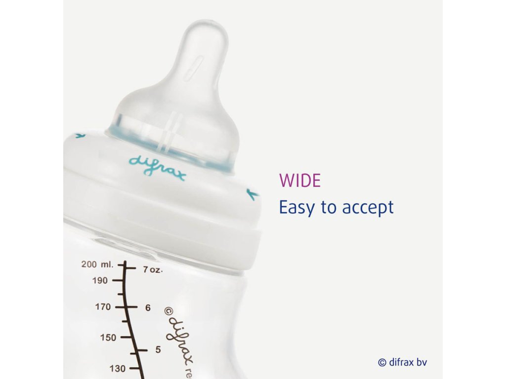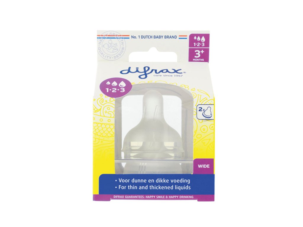 Difrax 1-2-3 Variflow savička se postará díky přirozenému tvaru imitující mateřský prs o to, že miminko si na krmení z lahvičky zvykne ve velice krátkém časovém intervalu. Savička má velice jemný a měkký povrch a je vyrobena z bezpečného vysoce kvalitního silikonu bez použití BPA. Savička je designována tak, aby simulací prsu stimulovala sací instinkt miminka, je proto ideální volbou pro kombinované kojení a krmení z lahvičky. Průtok výživy lze nastavit třemi stupni systému Variflow, které obsáhnou potravu od té nejtekutější až k husté jako je kašička apod. Vybraný stupěň průtoku je indikován vroubky po stranách savičky.Doplňkové parametry