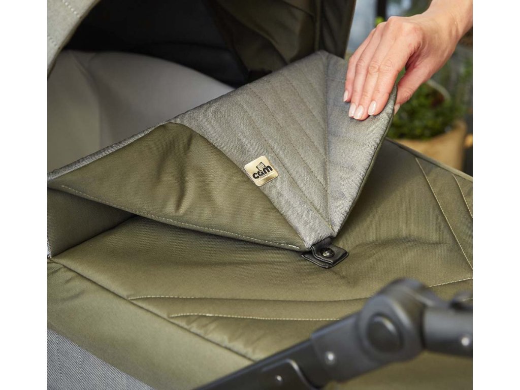 KOMPLET CAM LEVANTE NA PODVOZEK TECHNO Barevný komplet k podvozkům Techno – hluboká korba a sportovní sezení. Sestavte si kočárek přesně podle vašich představ.Praktičnost, která jde ruku v ruce s minimalistickým designem pro moderní rodiče – to je unikátní barevný komplet LEVANTE na podvozky TECHNO. Zamilujete si ho nejenom pro jeho chytré a praktické funkce, které vám usnadní život, ale také díky rafinovaným barevným kombinacím. Díky bohatému polstrování se bude vaše dítě v hluboké korbě cítit komfortně a v bezpečí. V letních měsících oceníte propracovaný systém odvětrávání, který zaručí, že uvnitř korby bude i ve velkém teplu stálá přijatelná teplota. Houpací základna v kombinaci s měkkou matrací napomáhá vašemu dítěti k rychlému usnutí. Hluboká korba • Nastavitelná hlavová opěrka do 4 poloh • Integrovaná rukojeť se systémem Push open• Široká stříška s průhledem a moskytiérou• Měkké polstrování• Zábrana proti větru• Houpací základna• Prostorná taška na kočárek s přebalovací podložkou Sportovní sezení • Velká stříška s možností prodloužení• Nastavitelná zádová opěrka do 4 poloh• Nastavitelná opěrka nohou• 5 bodový bezpečnostní pás• Prostorný nánožník• Možnost nasazení po i proti směru jízdy Součástí kompletu:Hluboká korba, sportovní sezení, přebalovací batoh, přebalovací podložka, nánožník, stříška pro autosedačku a polstrování ramenních pásů autosedačky.Komplet neobsahuje podvozek TECHNO. K barevnému kompletu lze dokoupit autosedačku CAM ve stejném designu nebo adaptéry kompatibilní s jinými značkami (Britax, Cybex, Besafe, Kiddy, Maxi Cosi).Doplňkové parametry