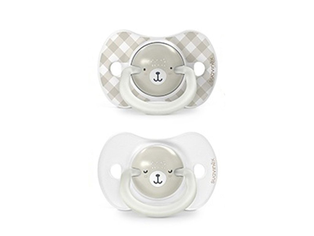 SUAVINEX | Šidítko DEN&NOC fyziologické silikon -2-4 m - 2 ks - zelený medvěd