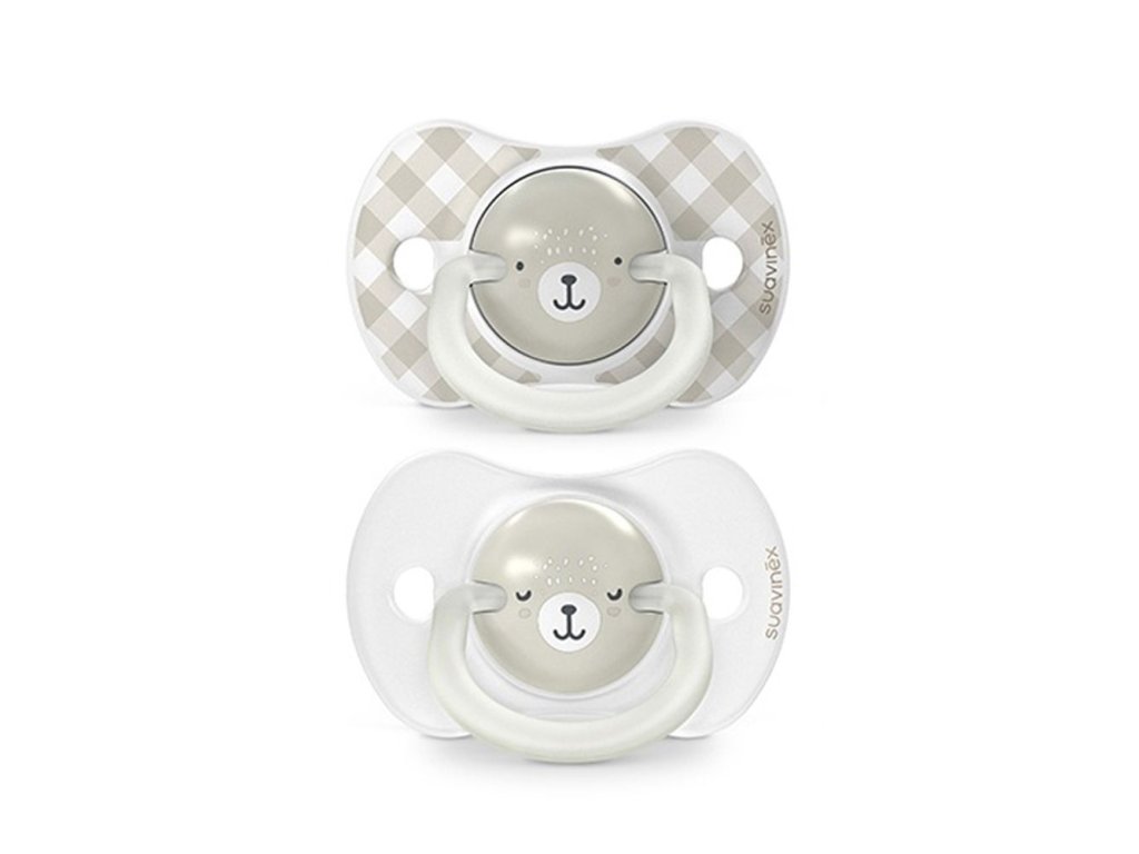 SUAVINEX | Šidítko DEN&NOC anatomické silikón 0-6 m - 2 ks - zelený medvěd