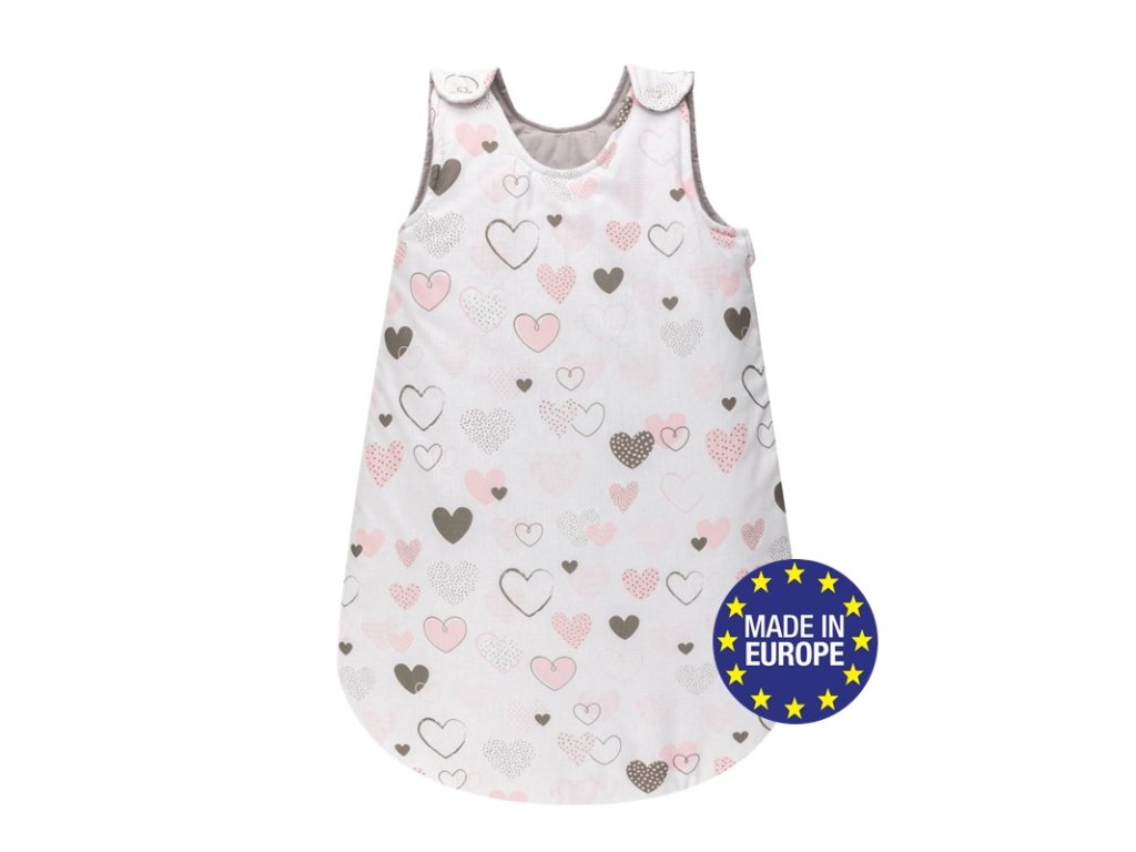 Bomimi Spací pytel 75cm / 3-12m, SRDÍČKA šedá