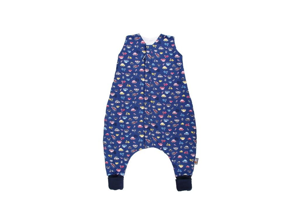 Letní dětský spací pytel s otvory pro nohy s motivem tmavomodrých autíček, dítě v něm může volně kopat nožičkami. Délka spacího pytle je cca 100 cm, lze jej prát v pračce při 30 °C. Délka spacího pytle odpovídá výšce dítěte k ramenům. Spací pytel má uprostřed zip a lze jej zcela otevřít v obou směrech, navíc má zip látkovou krytku, která zabraňuje přiskřípnutí krku do zipu. Spací pytel je ušitý ze dvou vrstev: vrchní materiál 100% bavlna, podšívka 100% bambusová viskóza. Česká výroba.Doplňkové parametry