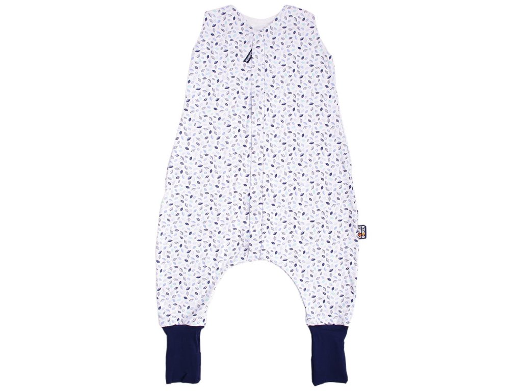 Letní spací pytel pro novorozené miminko s otvory pro nohy s motivem modrých lístků, miminko v něm může volně kopat nožičkami. Délka spacího pytle je cca 60 cm, lze jej prát v pračce při 30 °C. Délka spacího pytle odpovídá výšce dítěte k ramenům. Spací pytel má uprostřed zip a lze jej zcela otevřít v obou směrech, navíc má zip látkovou krytku, která zabraňuje přiskřípnutí krku do zipu. Spací pytel je ušitý ze dvou vrstev: vrchní materiál 100% bavlna, podšívka 100% bambusová viskóza. Česká výroba.Doplňkové parametry