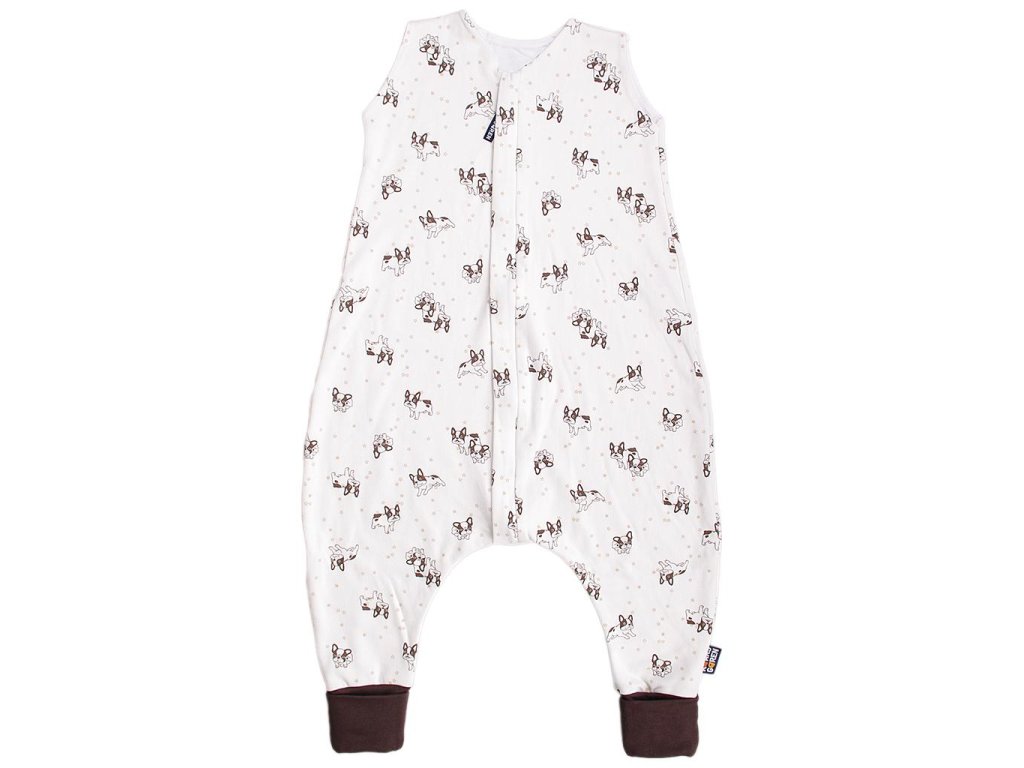 Letní spací pytel s nohavicemi s podšívkou z bambusové viskózy s motivem buldočků. Spací vak má TOG 0,48 to znamená, že je ideální do teploty 24 až 27 °C. Teplota lze regulovat oblečením - krátký nebo dlouhý rukáv, pyžamko, bodýčko apod. Délka spacího pytle je cca 80 cm, to je výška dítěte k ramenům. To odpovídá velikosti oblečení 92 až 110. Má uprostřed zip a je možné ho otevřít v obou směrech, navíc má zip látkovou krytku, která zabraňuje přiskřípnutí krku do zipu. Náplety na nohavicích jsou hnědé a lze je překlopením uzavřít. Spací pytel je ušitý ze dvou vrstev: vrchní materiál 100% bavlna, podšívka 100% bambusová viskóza. Praní v pračce při 30 °C. Česká výroba.Doplňkové parametry