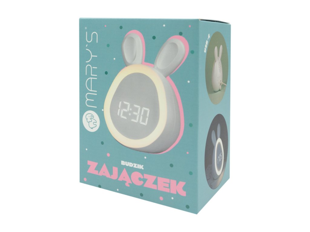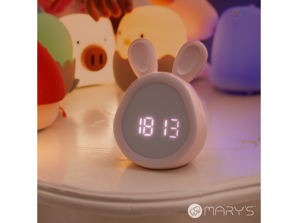 Mary's Budík - zajíc, bíláMary's budík ve tvaru zajíčka má roztomilý vzhled, příjemný na pohled. Perfektně se hodí jak do dětského pokojíčku, tak jako veselý dekorativní prvek do ložnice.Bílá barva je elegantní a neruší žádný interiér.Vlastnosti a výhody:Dlouhá doba provozu:Díky vysokokapacitní baterii vás může budík pohodlně budit až 2 týdny na jedno nabití bez nutnosti častého nabíjení.Rychle opět v akci:Budík se nabije za 4 hodiny pomocí dodaného USB kabelu, díky tomu může být rychle připraven opět do akce pro každodenní používání.Snadné použití:Intuitivní ovládání a přehledný displej usnadňují používání a nastavení času a budíku.Bezpečné materiály:Budík je vyroben z odolných materiálů bezpečných pro děti ABS a HIPS, díky tomu je nejen bezpečný ale i odolný vůči mechanickému poškození.Ekologický zdroj energie:Díky baterii s kapacitou 1500 mAh je budík šetrnější k životnímu prostředí, protože omezuje potřebu jednorázových baterií.Doplňkové parametry