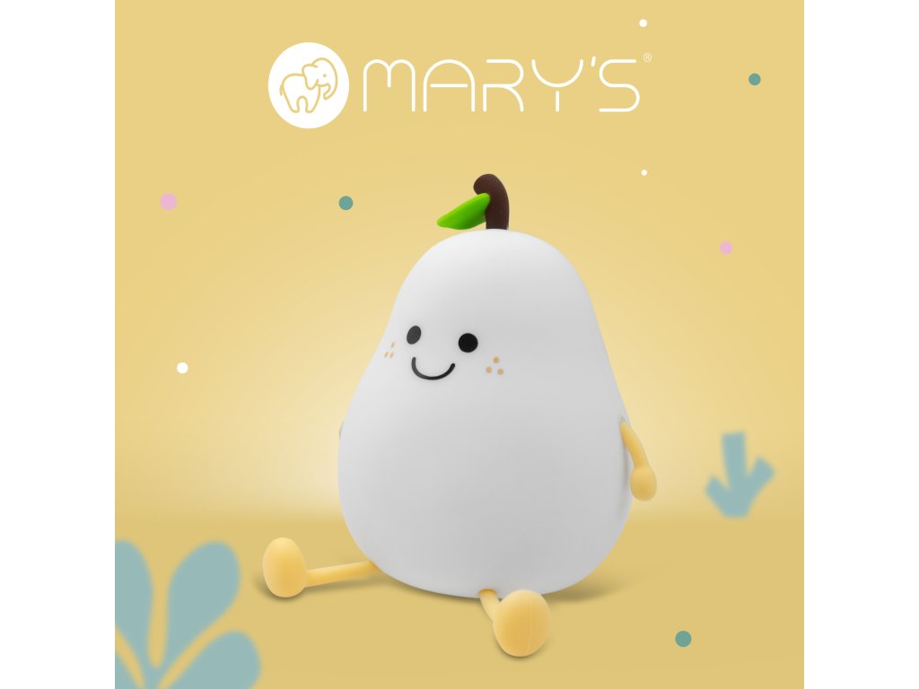Mary's Noční LED lampička RGB - hruškaMary’s LED noční lampička hruška je roztomilá a funkční noční lampička ve tvaru hrušky, která poskytuje teplé a útulné osvětlení, ideální do každé místnosti. Díky funkci RGB také přidává barevný akcent, což z ní dělá jedinečnou světelnou dekoraci. Ideální do ložnice, dětského pokoje, obývacího pokoje nebo jiných míst, kde je potřeba jemné a estetické světlo.Vlastnosti a výhody:Tvar a design:Lampička má roztomilý tvar hrušky, který je jedinečný a obzvláště atraktivní pro děti a milovníky unikátních a kreativních předmětů.Minimalistická bílá barva a odolné materiály (ABS, PC, silikon) zajišťují, že lampa ladí s různými styly interiérů a dodává jim elegantní a útulný akcent.Všestranné osvětlení:Barva světla 3000K (teplá bílá) vytváří příjemnou a relaxační atmosféru, ideální pro večerní odpočinek.Funkce RGB umožňuje výběr různých barev, což dodává lampě dekorativní efekt a umožňuje přizpůsobit osvětlení náladě nebo příležitosti.Dlouhá doba provozu:Při vysokém jasu může lampa svítit až 6 hodin. Ideální pro intenzivní osvětlení v krátkém čase.Při nízkém jasu je doba provozu až 24 hodin. Lampička vám tak poskytne dlouhodobé a jemné osvětlení po mnoho nocí bez nutnosti častého nabíjení.Rychlé nabíjení:Lampička je vybavena USB kabelem, který nabízí rychlé nabití za 3 hodiny a variabilitu nabíjení z různých zdrojů napájení, jako je počítač, powerbanka nebo síťový adaptér.Bezpečnost a pohodlí:Použité materiály (ABS, PC, silikon) jsou bezpečné, odolné proti poškození a snadné na údržbu.Lampička je lehká a přenosná, díky tomu ji můžete vzít s sebou do každé místnosti, kde je jí třeba.Měkký silikonový povlak zajišťuje bezpečné používání lampy, zejména v dětských pokojích.Světlo:Barva / jas: nastavitelnéChromatičnost: Teplá bílá 3000 K + RGB (variabilní barvy)Zdroj světla:Zdroj světla: integrovaný LED (nevyměnitelný)Patice (objímka): zdroj světla je integrovanýOvládání: dotykovéSvětelné efekty a senzory: Nastavení barvy světla (RGB), StmíváníTyp: lampička / stolní, nočníVhodné využití: dětský pokojDoplňkové parametry